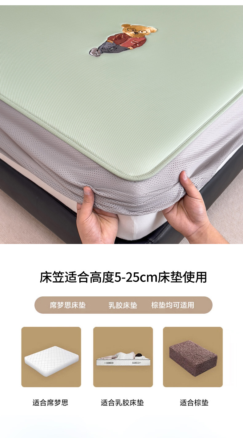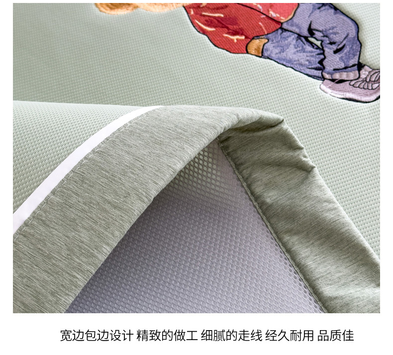 商品名称:印季家纺 2026新款丝滑凉感绣花软席席子-洛克熊 水绿