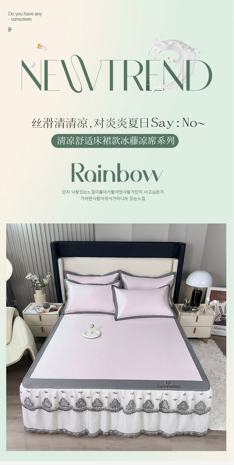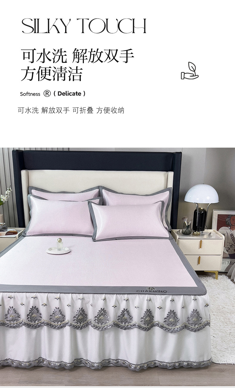 (总)印季家纺 2025新款纯色加密冰藤床裙凉席,粉色,灰色,咖啡,浅紫,水绿,天蓝