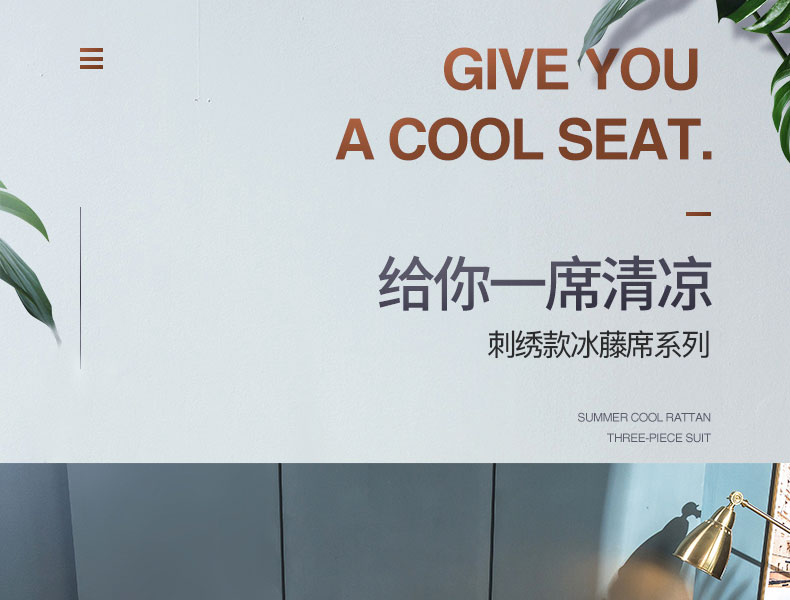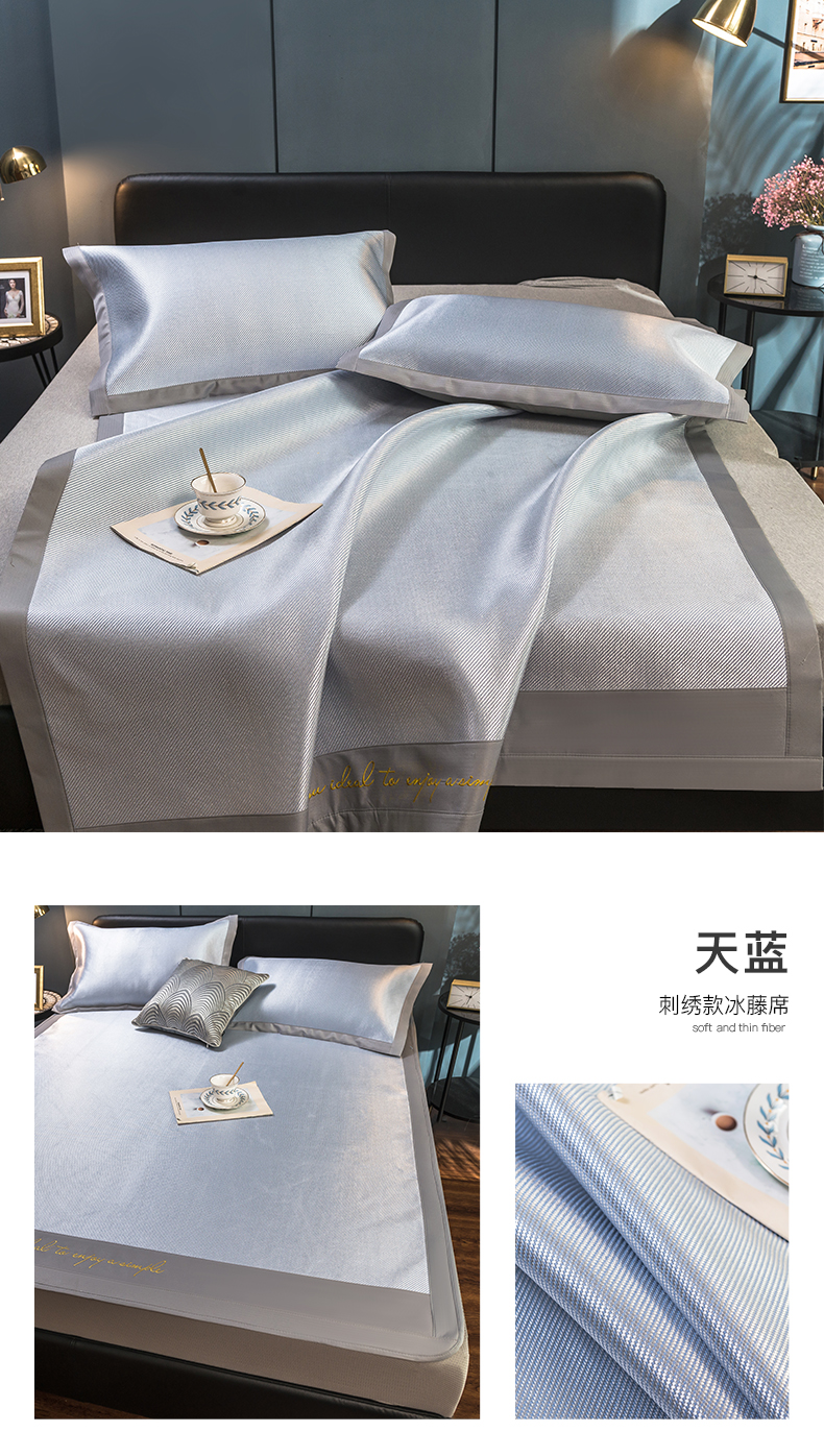 商品名称:印季家纺 2026新款刺绣款冰藤席 天蓝