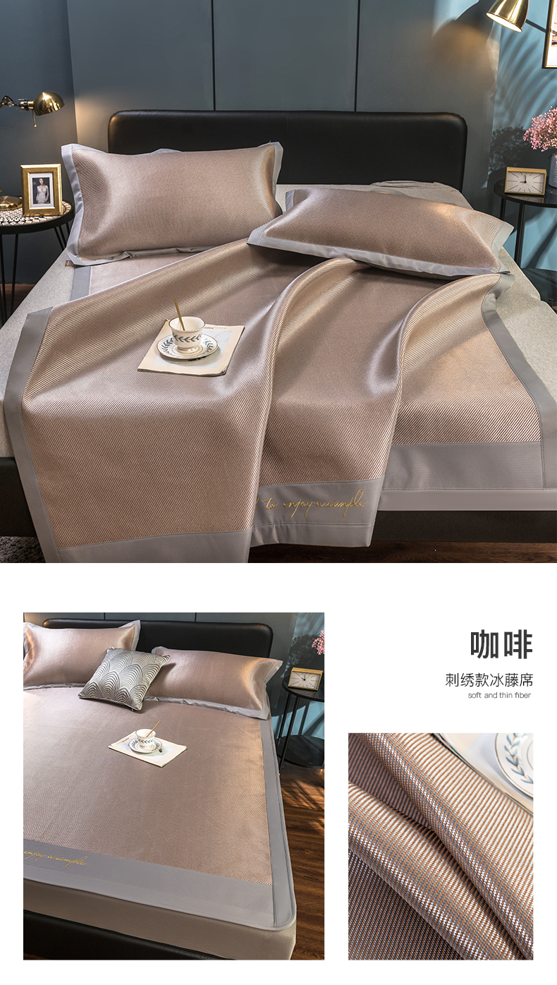 (总)印季家纺 2026新款加厚肌理纹绣花碳光席席子凉席,咖啡,豆沙,水绿,灰色,深蓝
