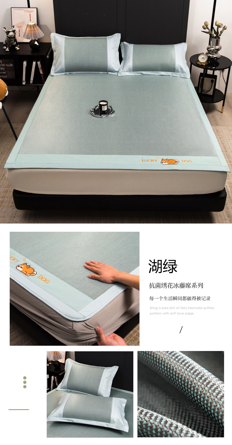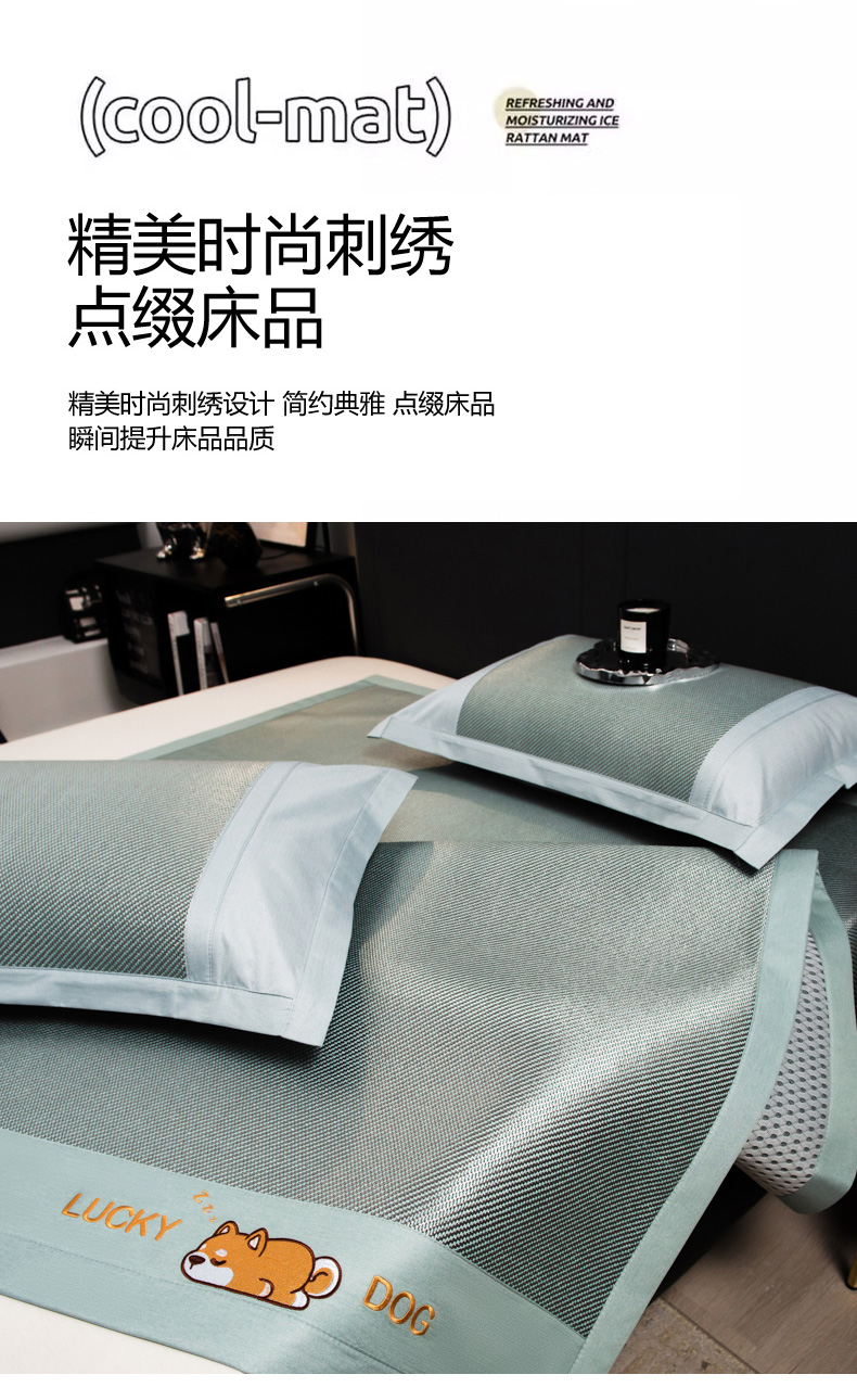 当前位置: 91家纺网 > 商品网购 > 床上用品 > 凉席 > 其他凉席 > 印季家纺 2026新款5A级抗菌加厚绣花冰藤席-幸运狗(床笠款) 银咖