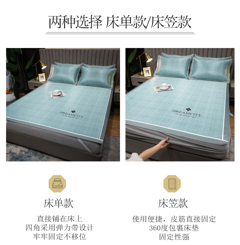 (总)印季 2025新款拼色加密冰藤-床裙-凉席,色块-蓝绿,色块-浅灰,色块-浅蓝,色块-浅绿,条纹-蓝绿,条纹-浅灰,条纹-浅绿
