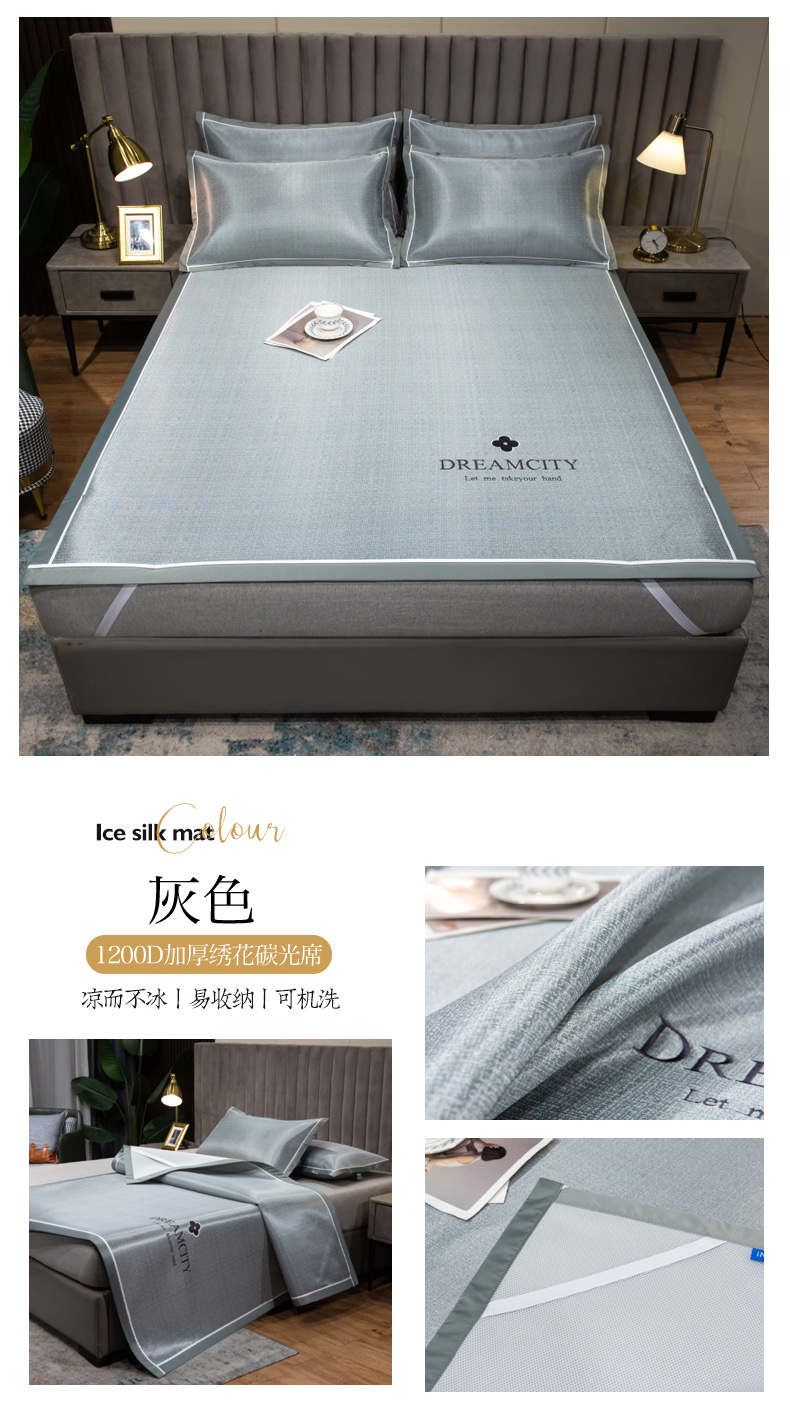 (总)印季 2025新款5A级抗菌加厚绣花冰丝席-流星雨,豆沙,灰咖,天蓝,蓝灰,水绿,银灰