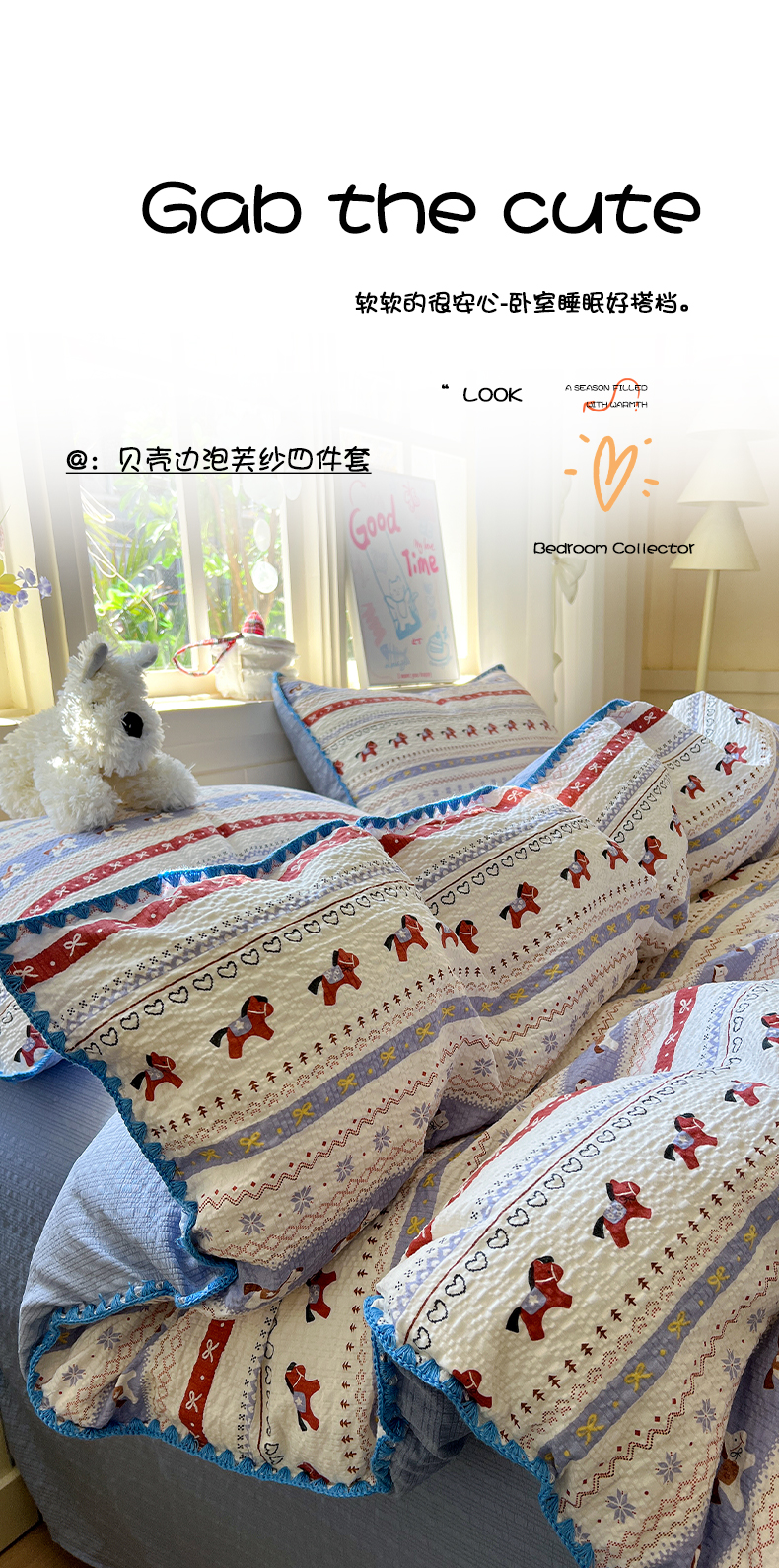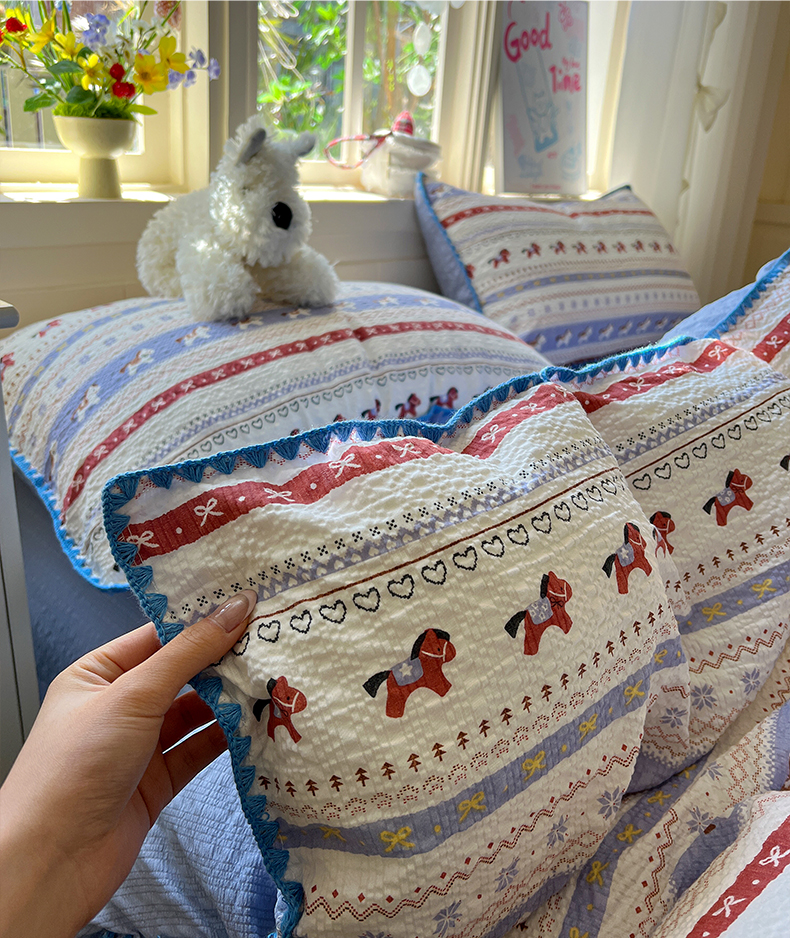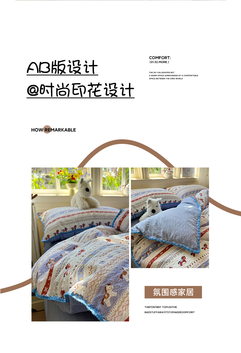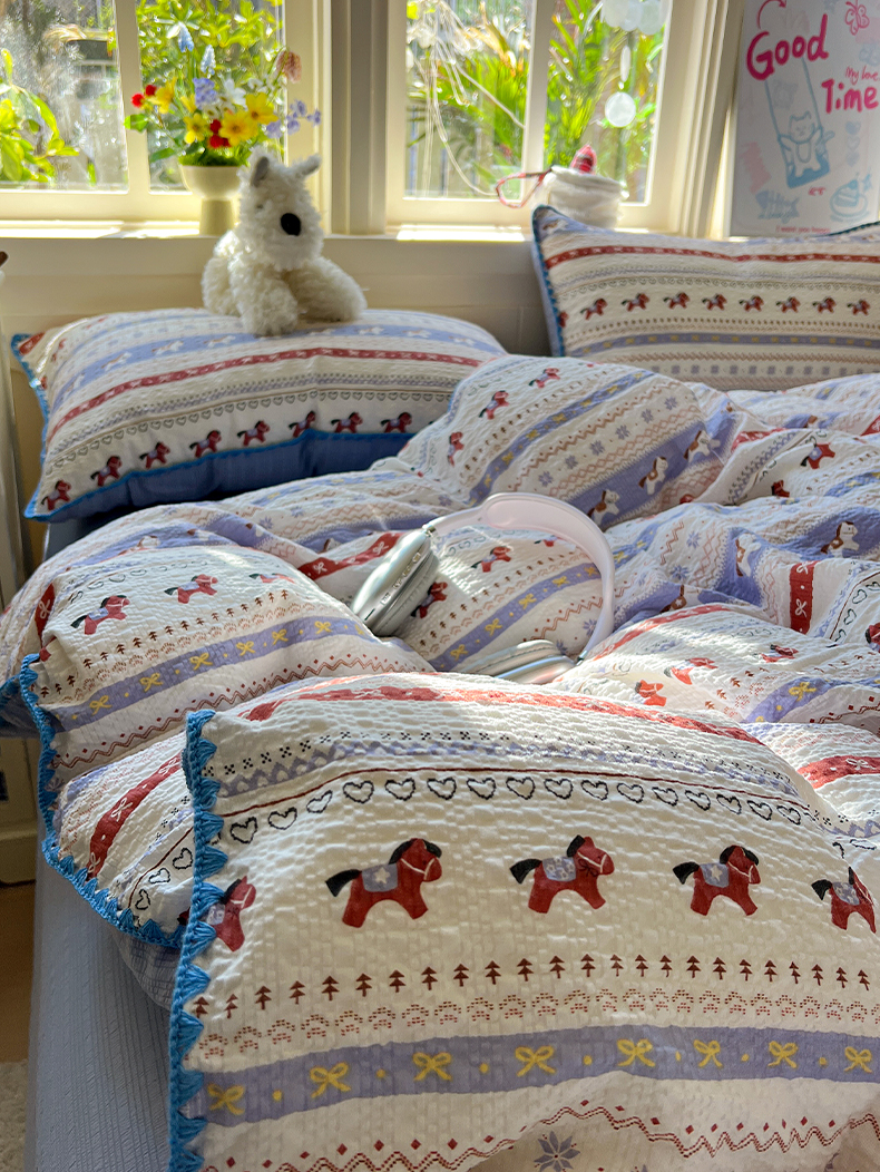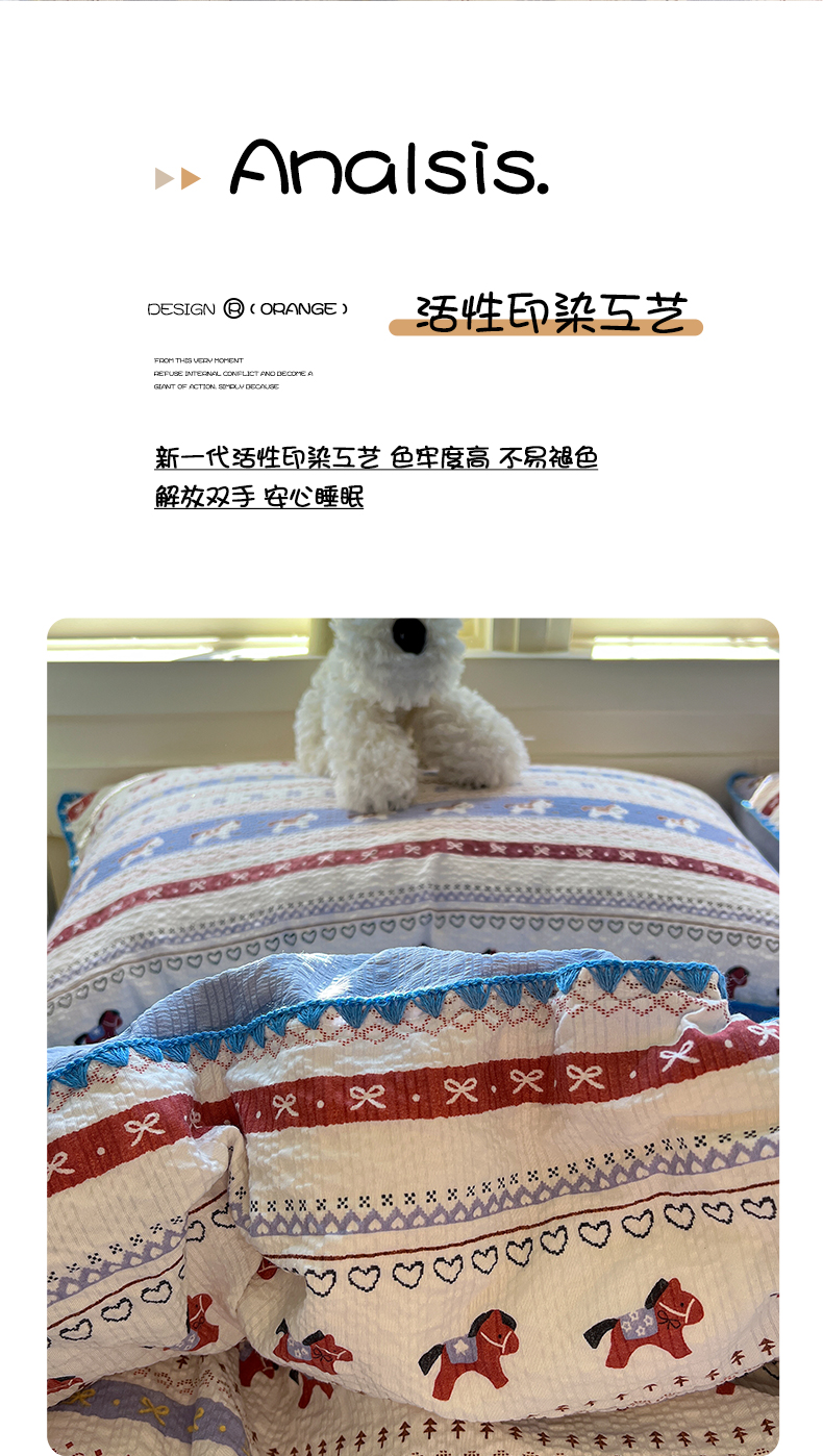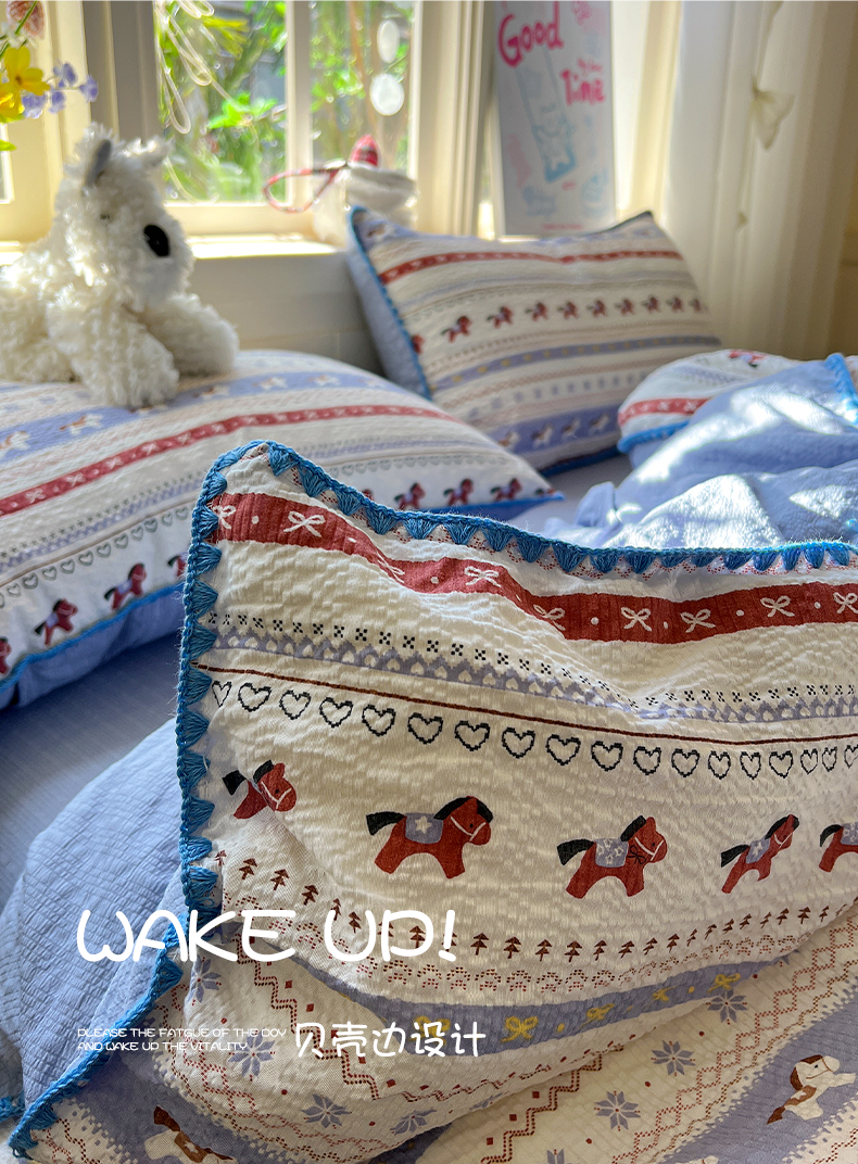 当前位置: 91家纺网 > 商品网购 > 床品套件 > 四件套 > 其它四件套 > 水墨江南 2026新款贝壳边泡芙纱时尚印花四件套 费尔岛小马