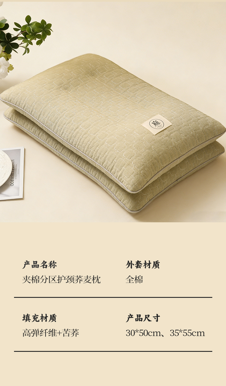 当前位置: 91家纺网 > 商品网购 > 枕头/枕芯/保健枕/颈椎枕 > 枕头枕芯 > 梦叶草 2026新款夹棉分区护颈荞麦枕 三分区护颈荞麦枕-绿色