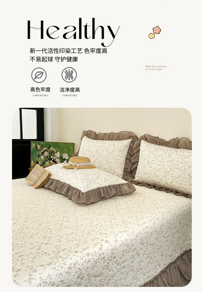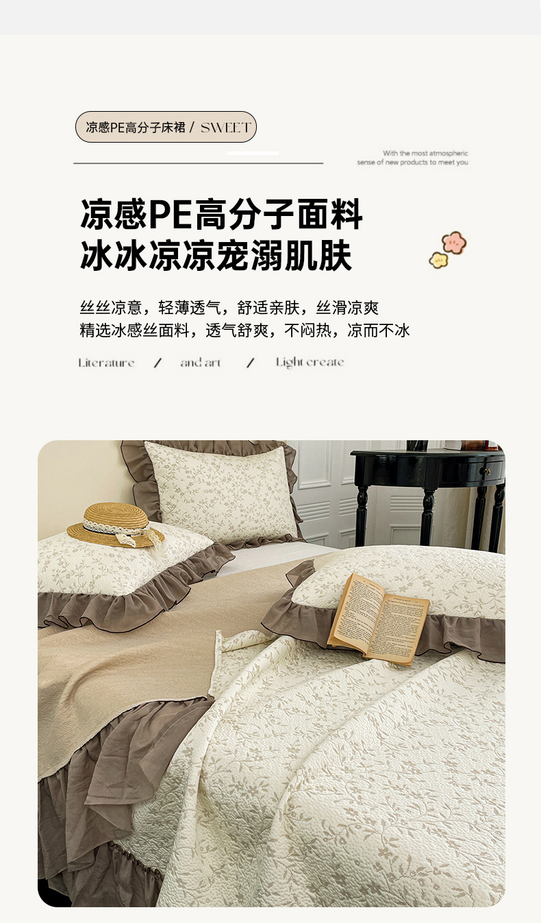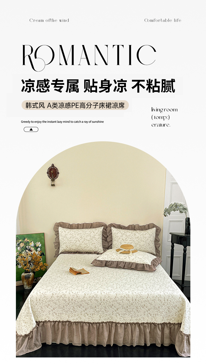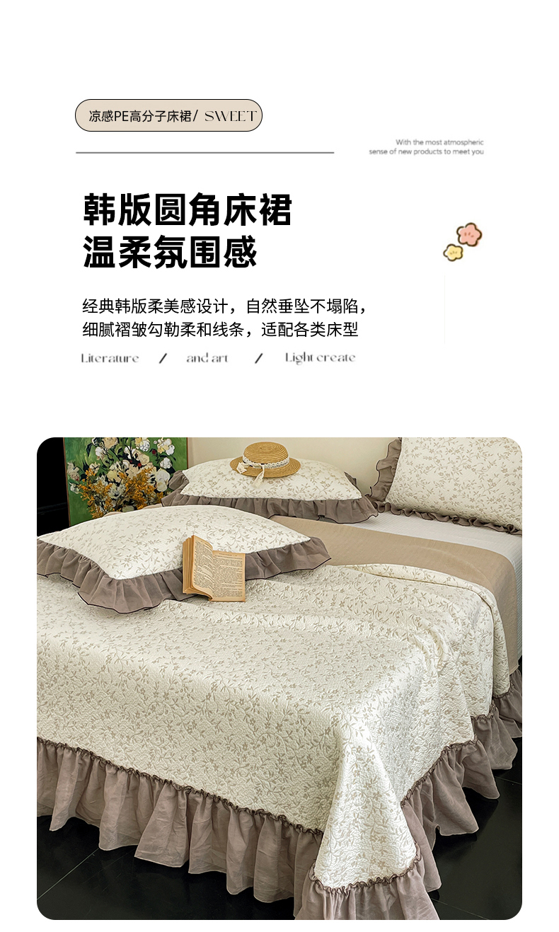 (总)金绣美居 2026新款PE高分子凉感席聚乙烯冰感床裙款凉席三件套-韩式系列,韩恋,花朝,棠梨,星落,迎风,郁香
