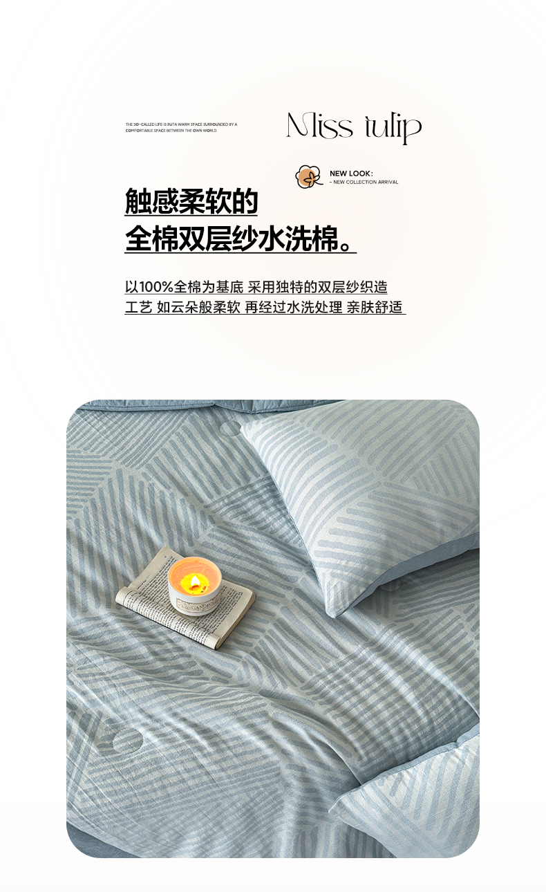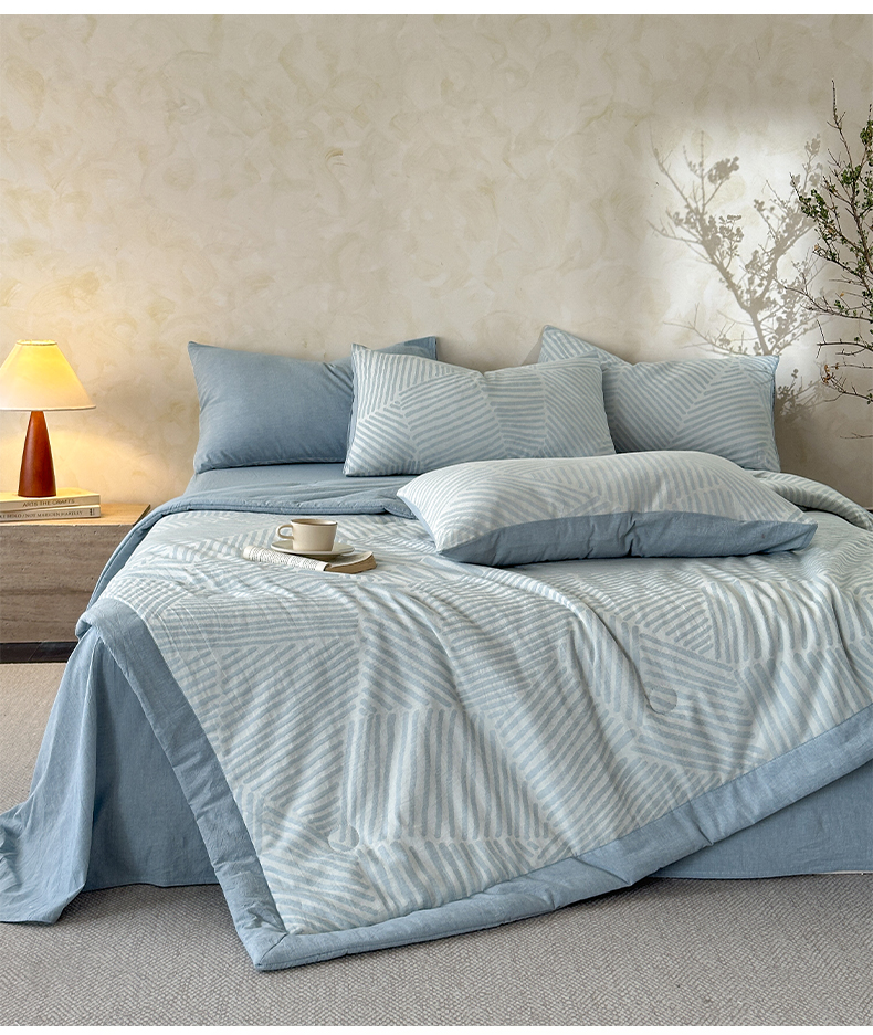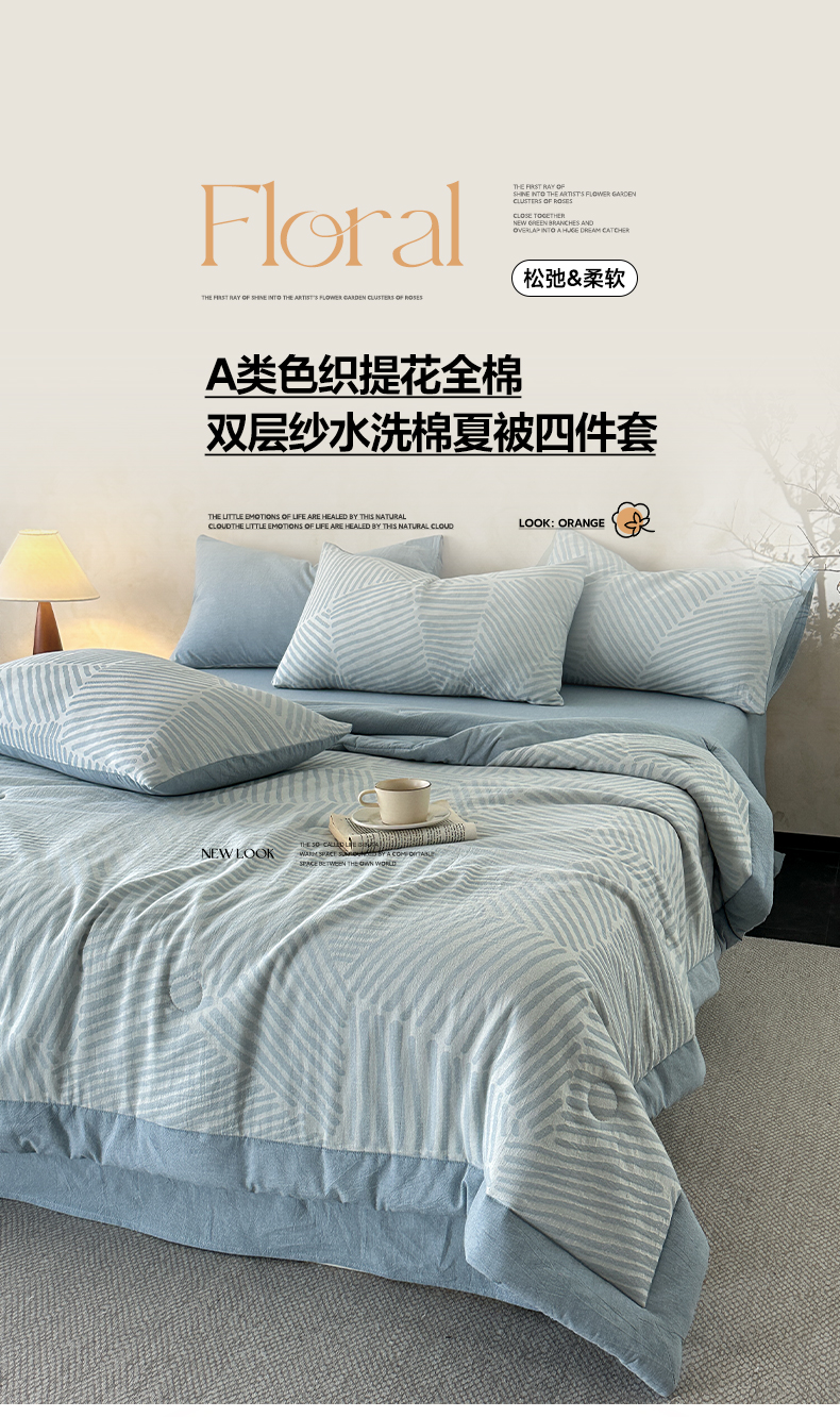 当前位置: 91家纺网 > 商品网购 > 床品套件 > 四件套 > 夏被四件套 > 如一 2026新款A类色织提花全棉双层纱水洗棉夏被夏凉被空调被四件套 浮光粉