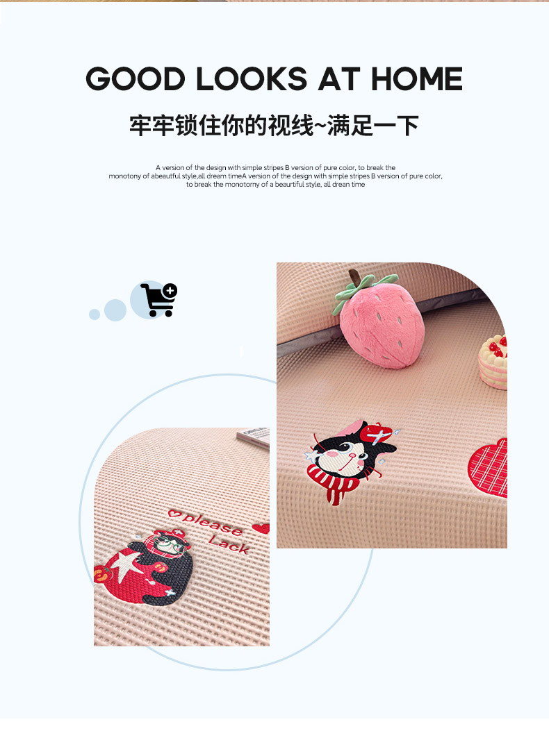 商品名称:圣比熊 2026春夏新款卡通印加绣花凉豆豆绣花凉席席子 草莓萌猫