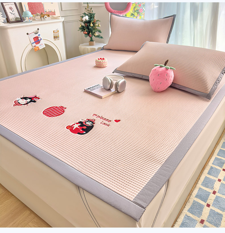 圣比熊 2026春夏新款卡通印加绣花凉豆豆绣花凉席席子 草莓萌猫