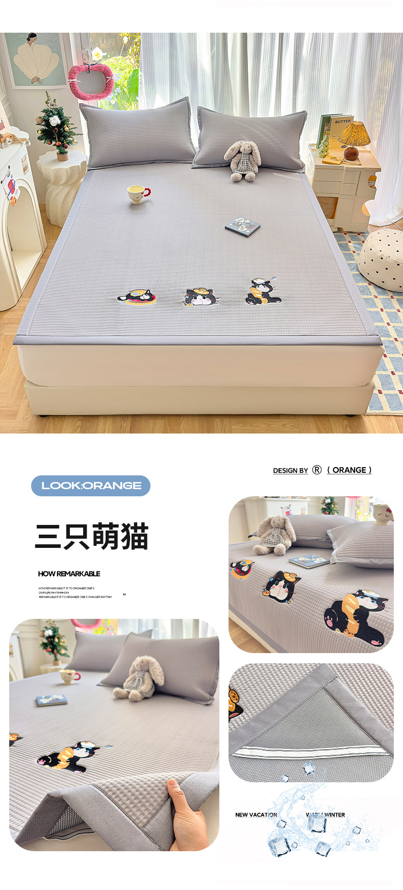 (总)圣比熊 2026春夏新款卡通印加绣花凉豆豆绣花凉席席子,草莓萌猫,黑喵小队,酷狗派对,萌宠果趣,三只萌猫