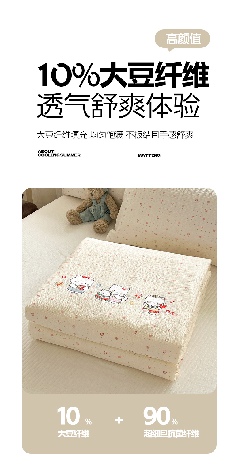 • 91家纺网 家纺一手货源 找家纺 (总)一加一 2026新款皱皱纱绣花三角针大豆夏被夏凉被空调被三件套,爱心猫(粉),豹纹小猫,粉心小兔,卡皮巴拉,快乐星星人,熊猫乐园,音乐星星人