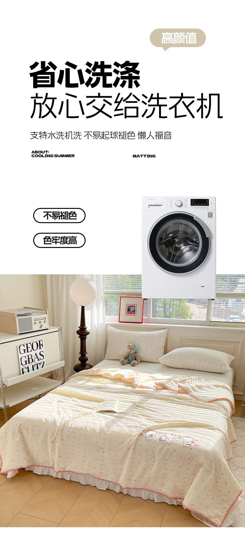 (总)一加一 2026新款皱皱纱绣花三角针大豆夏被夏凉被空调被三件套,爱心猫(粉),豹纹小猫,粉心小兔,卡皮巴拉,快乐星星人,熊猫乐园,音乐星星人