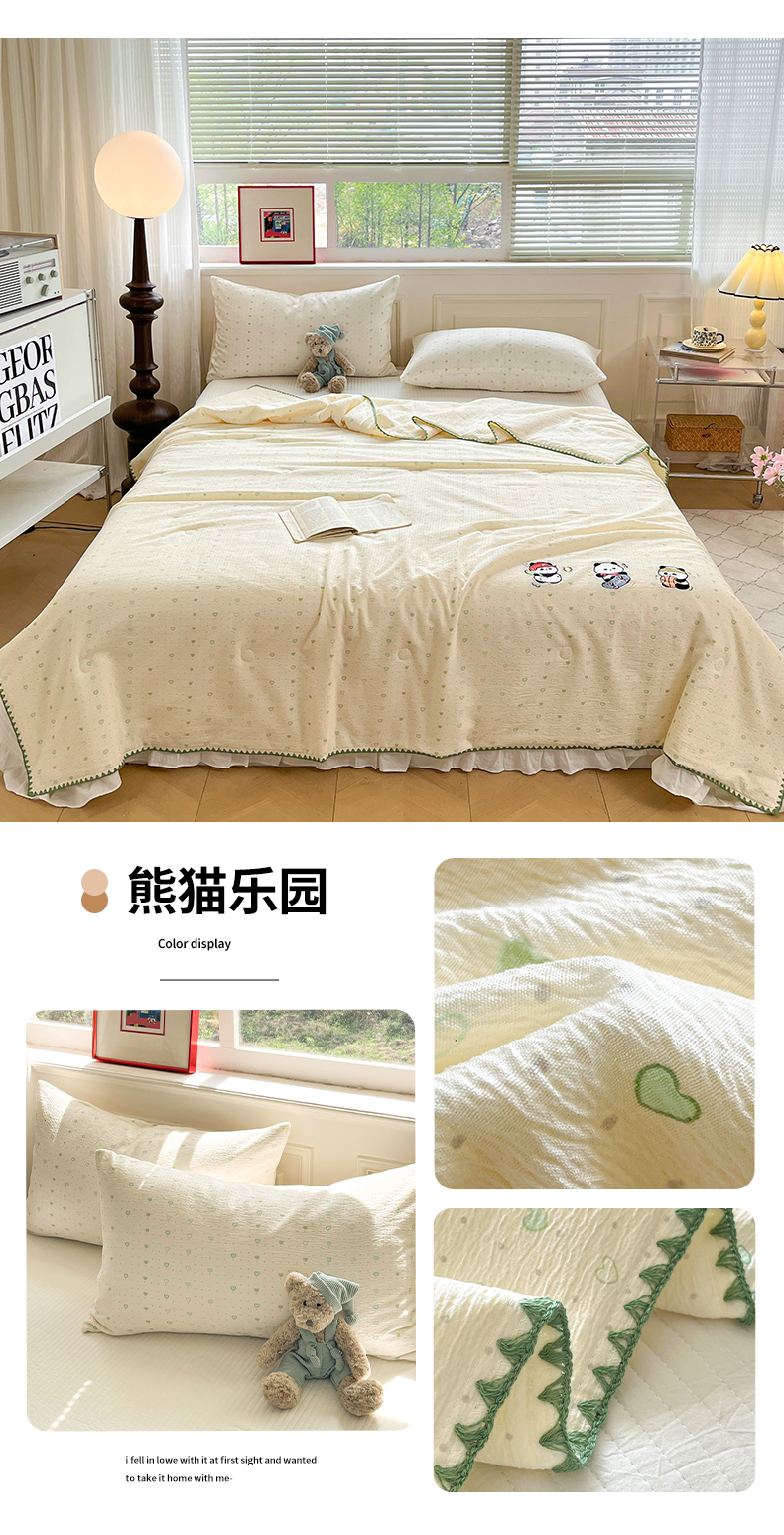 (总)一加一 2026春夏新款云小棉贴布绣花大豆夏凉被空调被夏被四件套,波点小狗,波点熊仔,蜜桃小兔,抹茶熊猫,奶油小鳄鱼