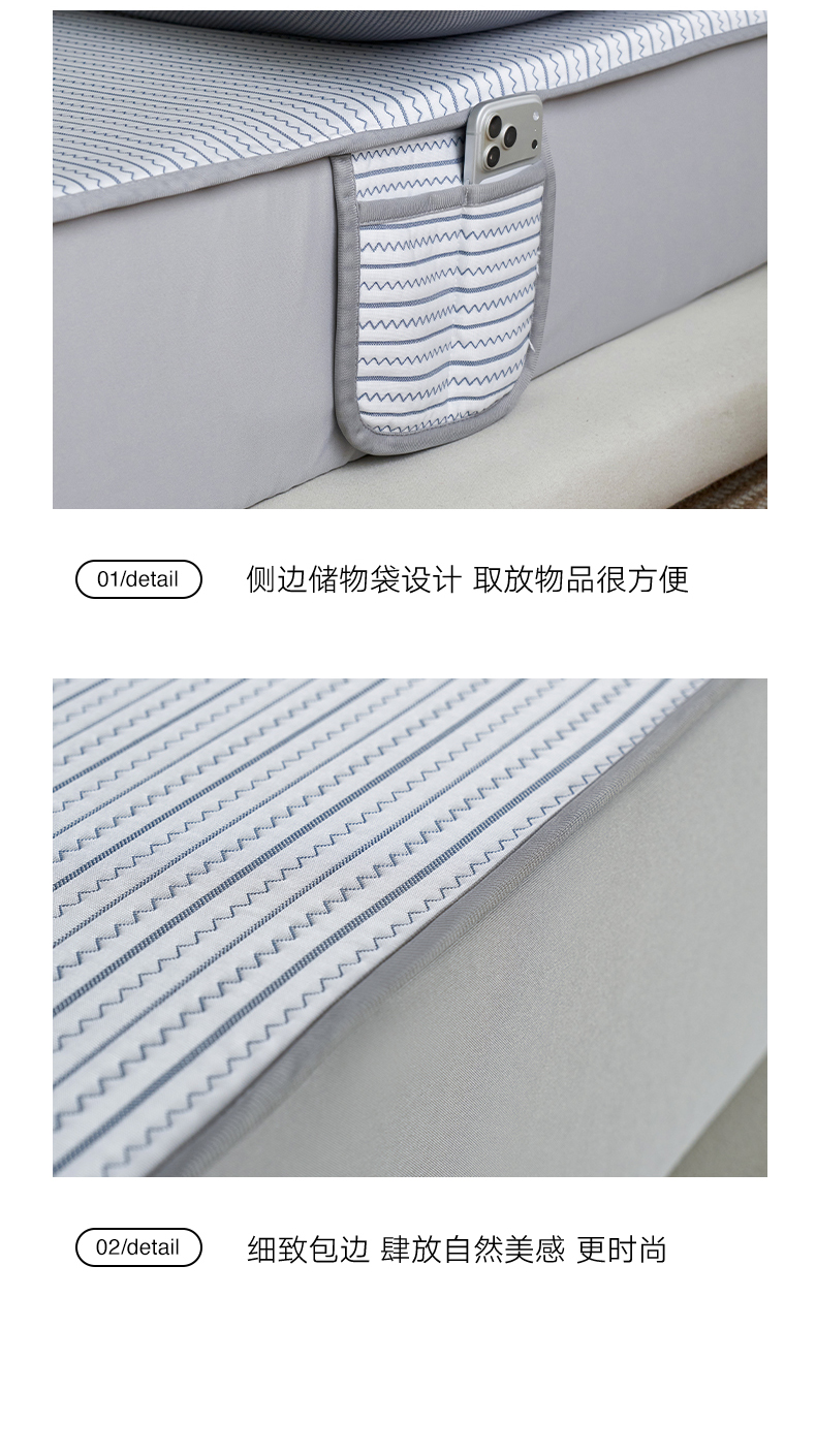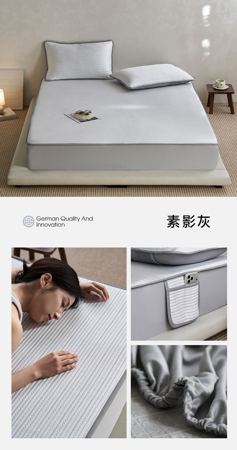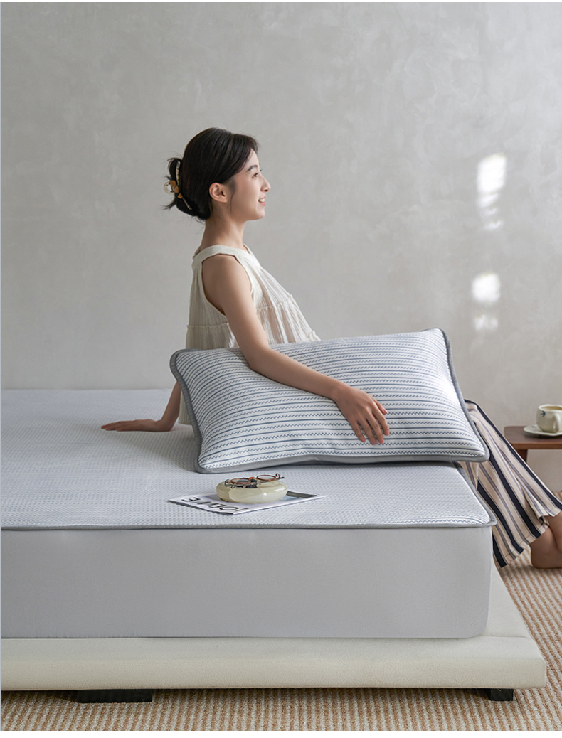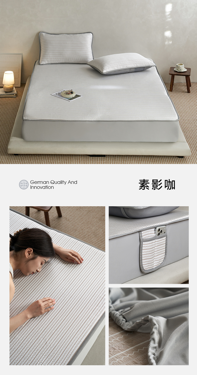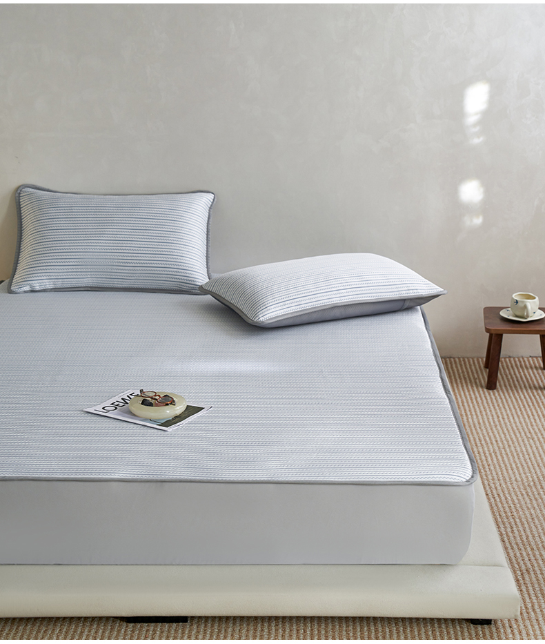 (总)千朵森 2026春夏新款冰感条纹凉席床笠款凉席席子三件套-素影,组合图仅供展示不可下单,素影灰,素影咖,素影蓝