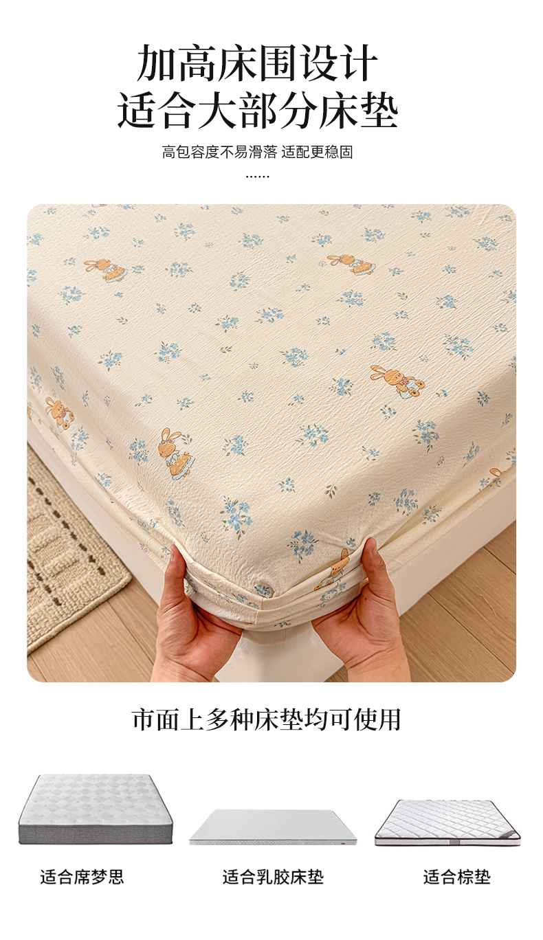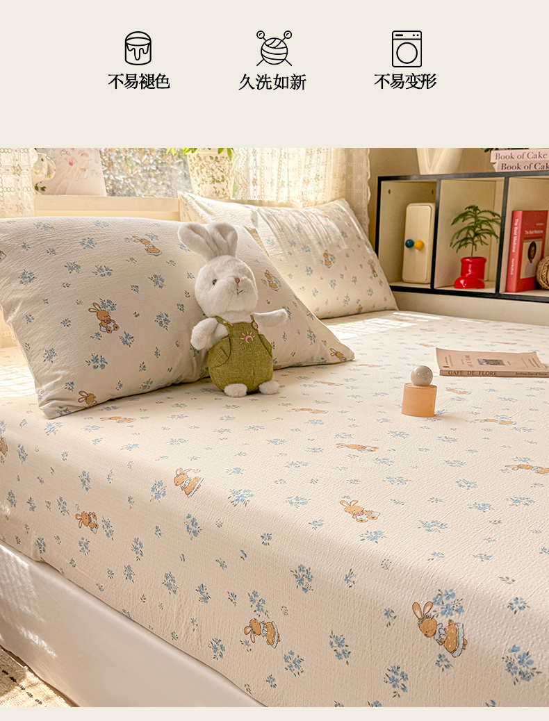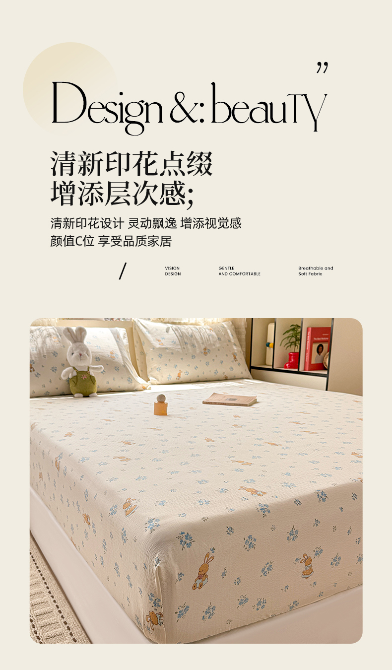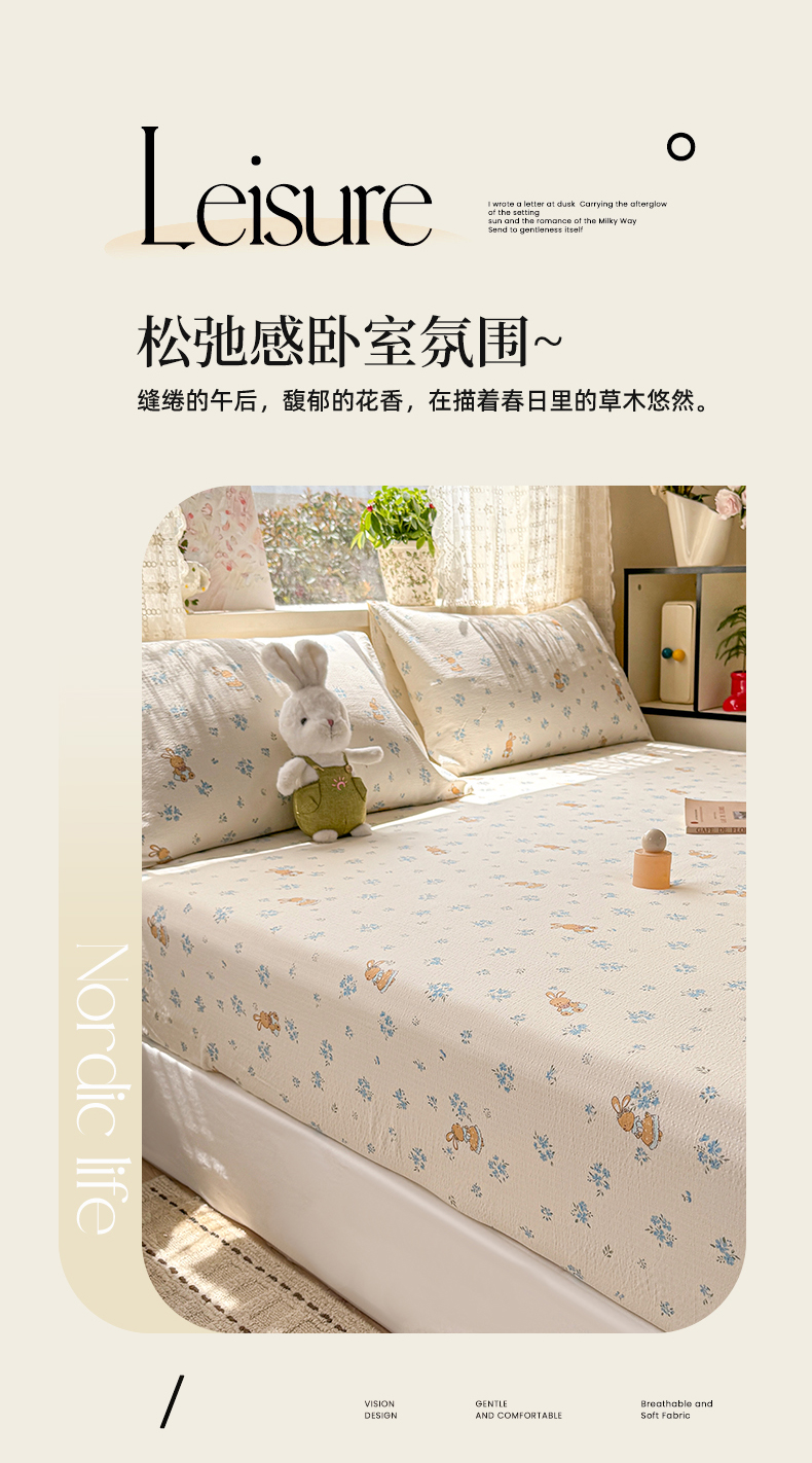 • 91家纺网 家纺一手货源 找家纺 丝芙妮家居 2026春夏新款皱皱棉双层纱泡芙棉床笠 床笠单件 牧歌
