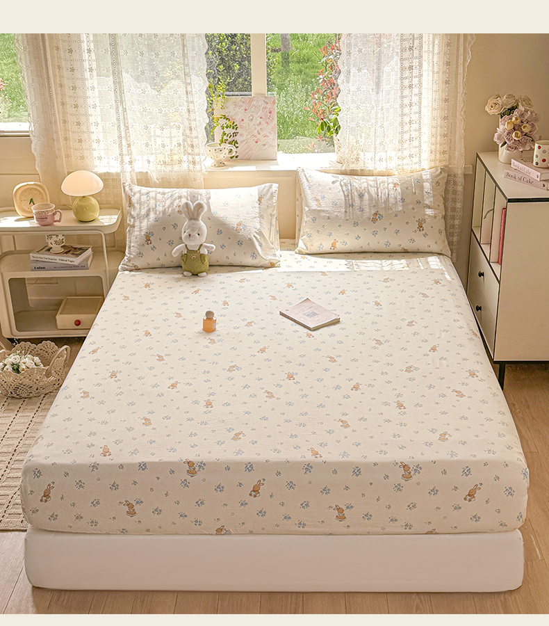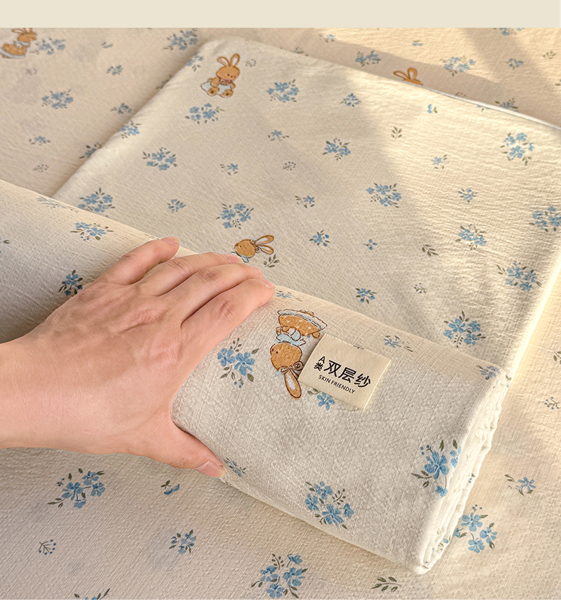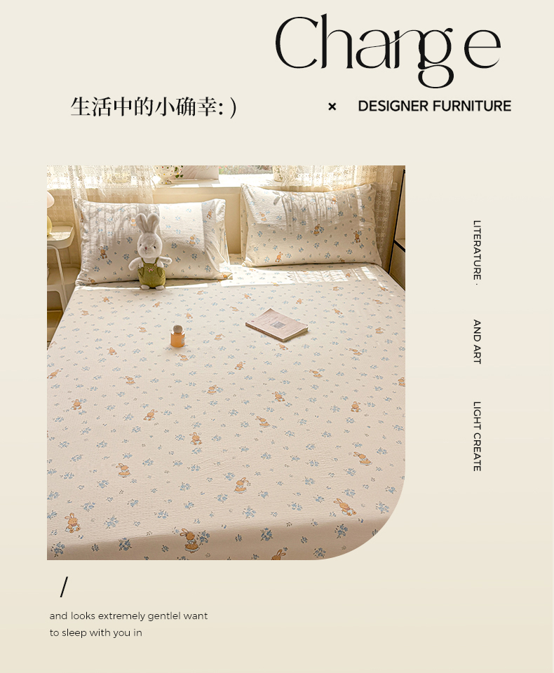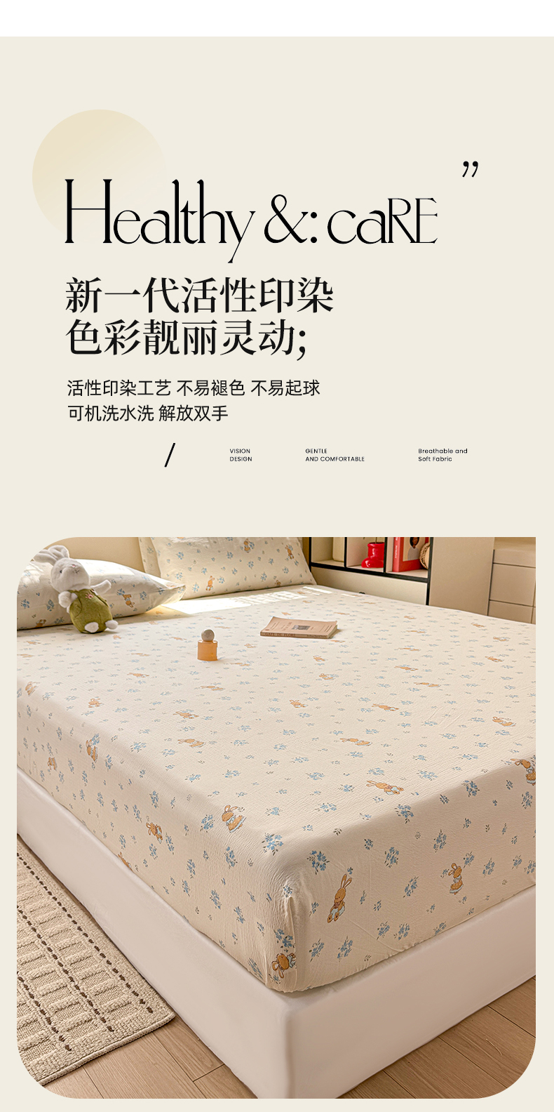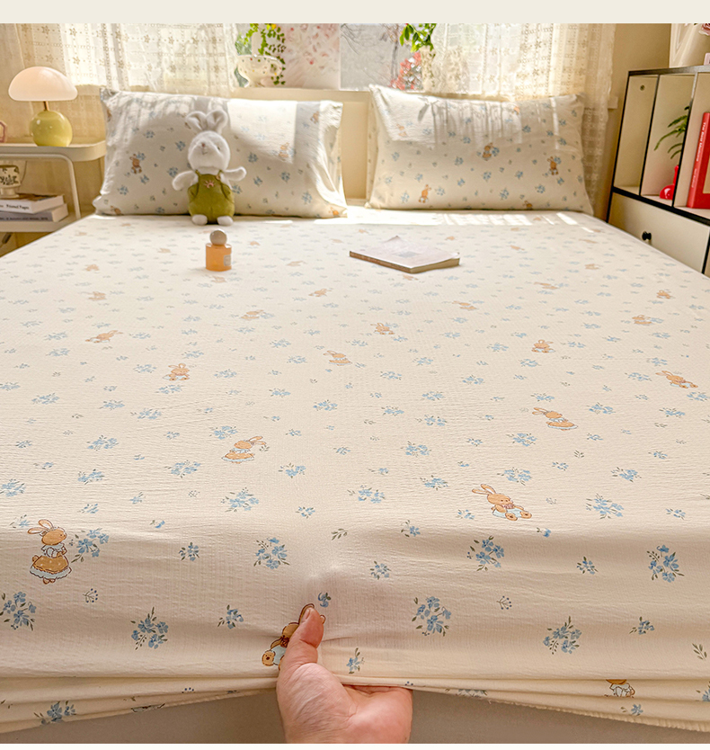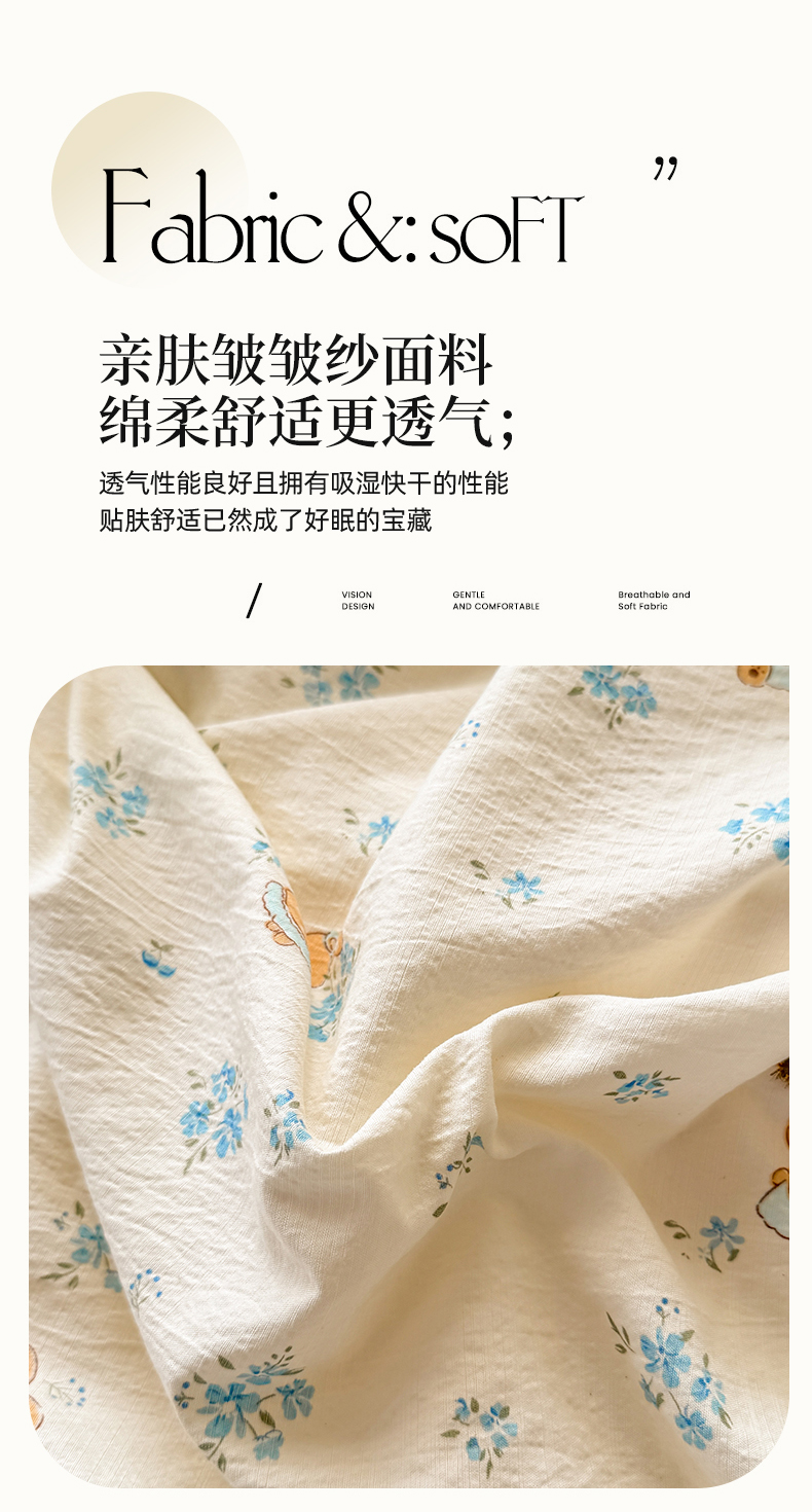 • 91家纺网 家纺一手货源 找家纺 丝芙妮家居 2026春夏新款皱皱棉双层纱泡芙棉床笠 床笠单件 牧歌