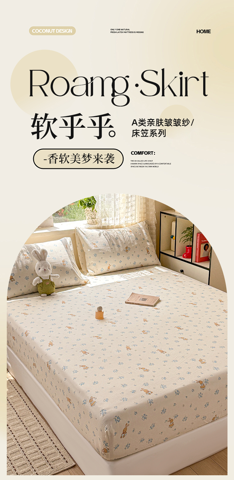 丝芙妮家居 2026春夏新款皱皱棉双层纱泡芙棉床笠 床笠单件 牧歌