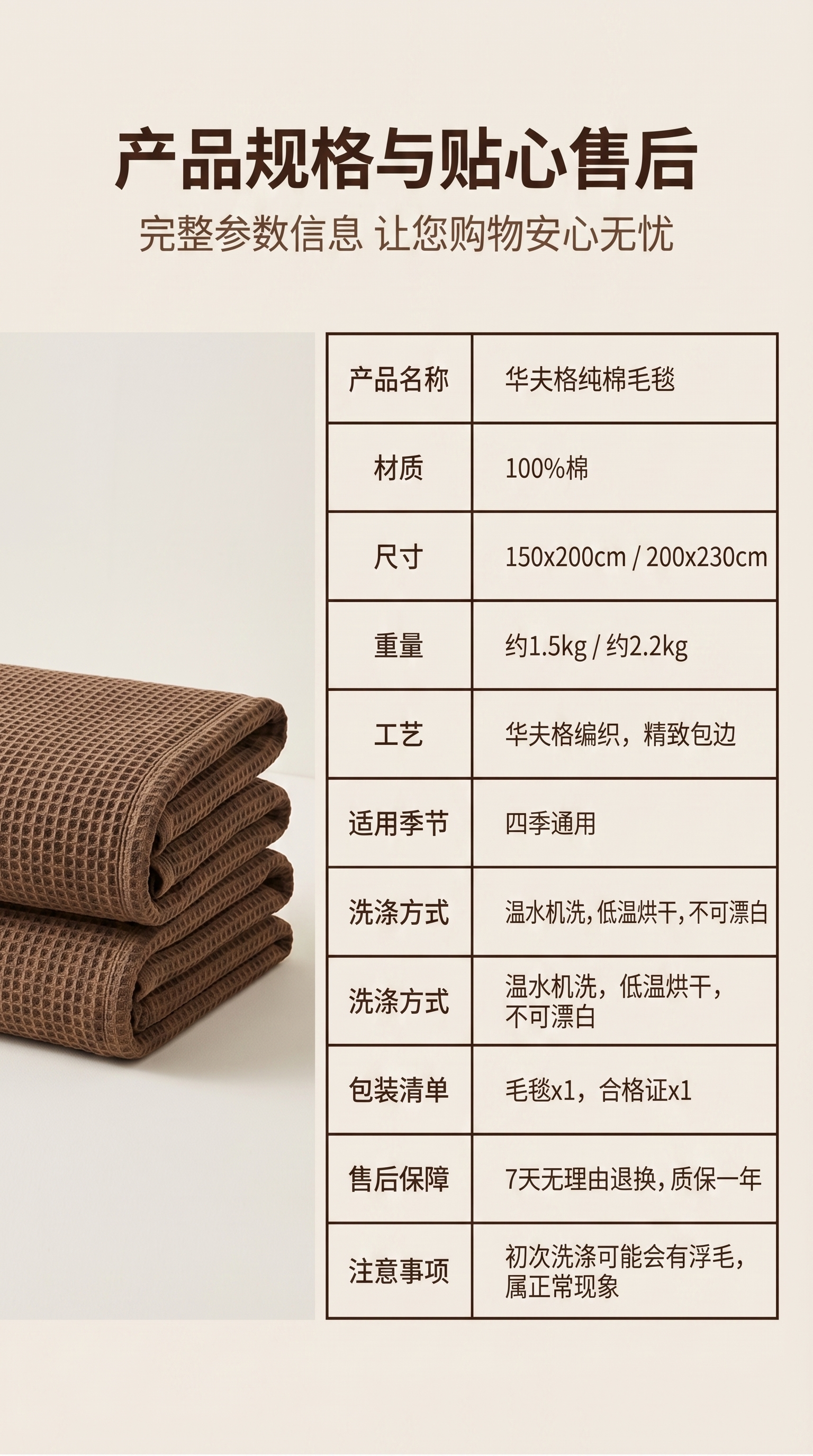 商品名称:七七家纺 2026新款全棉纯棉华夫格毛毯夏被毯子 松露咖
