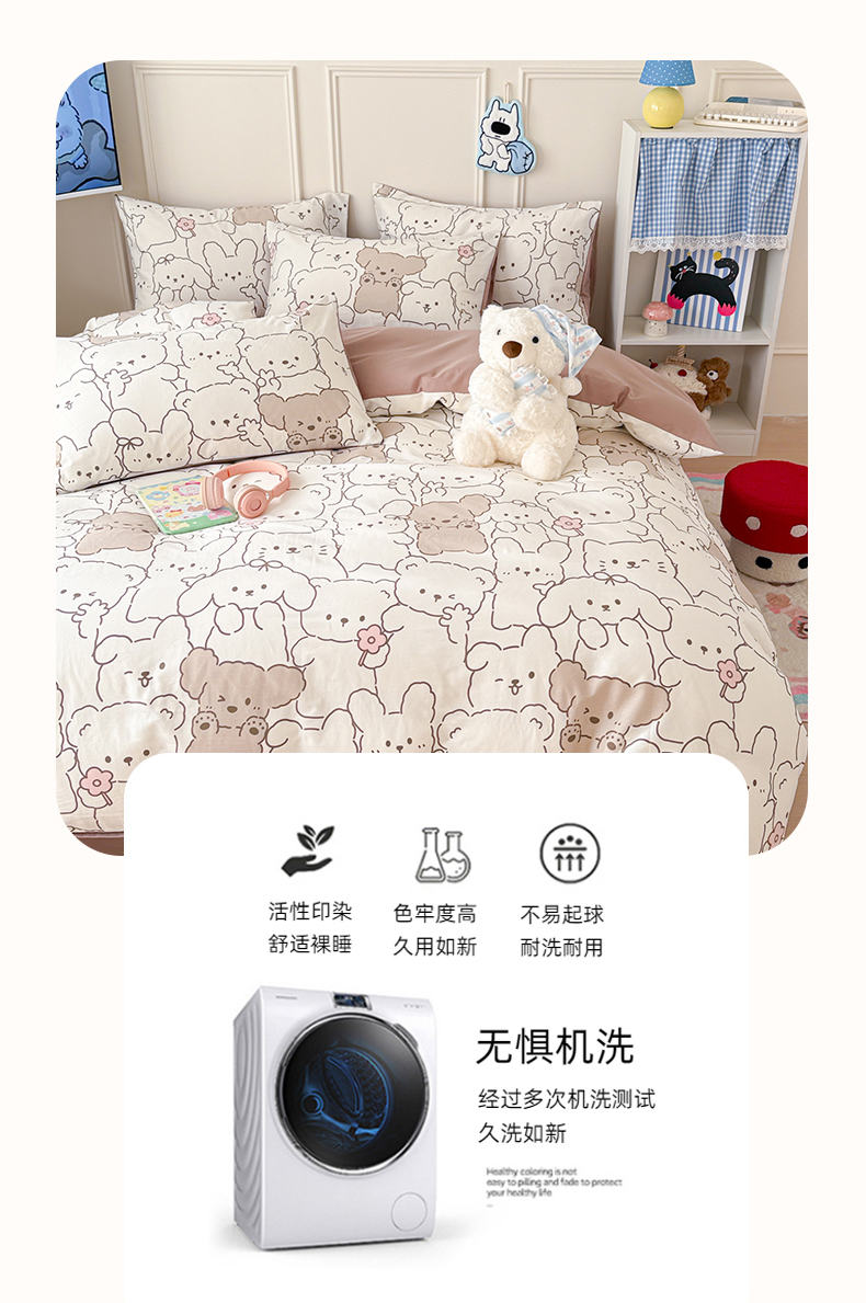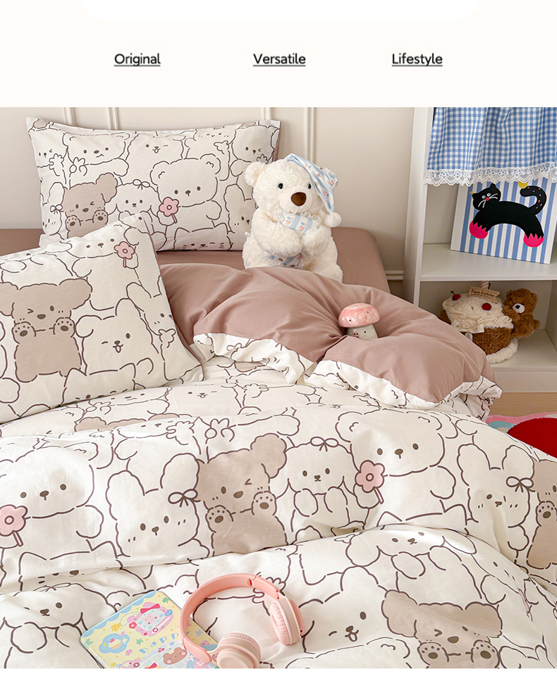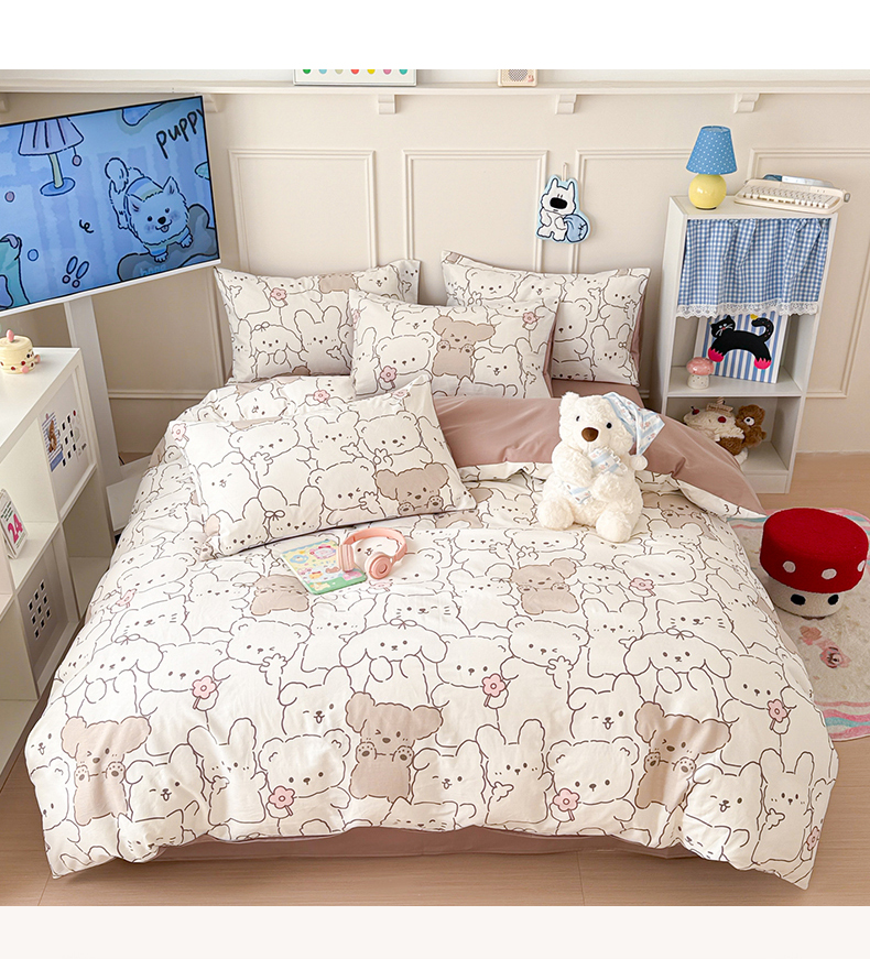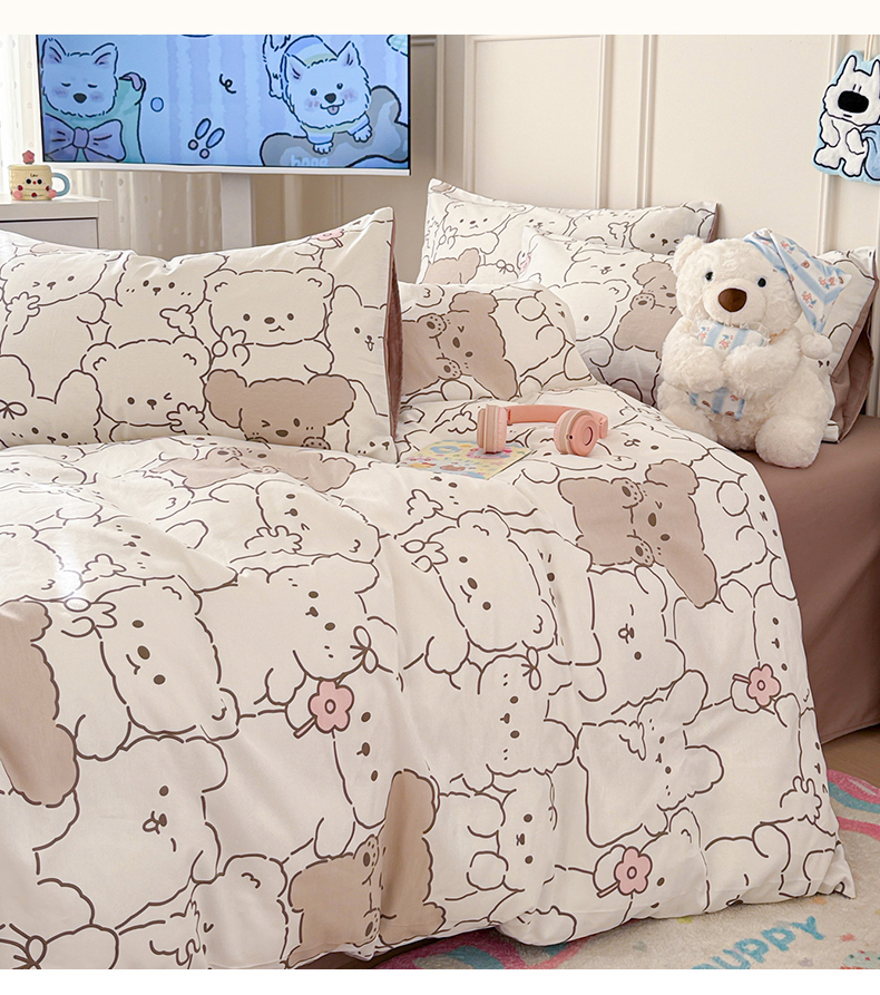 当前位置: 91家纺网 > 商品网购 > 床品套件 > 四件套 > 全棉普通四件套 > 女子家纺 2026新款全棉纯棉12868卡通印花四件套 小熊涂鸦