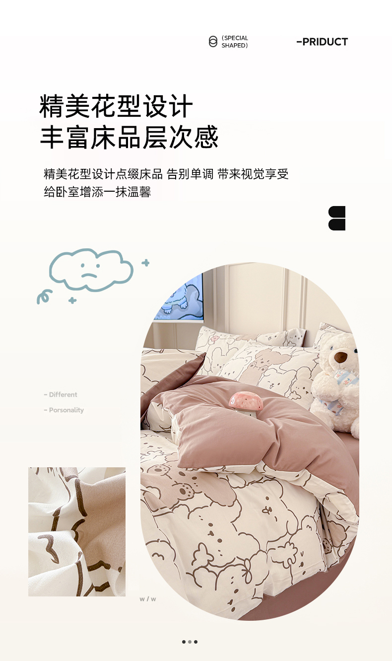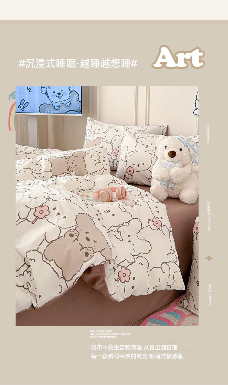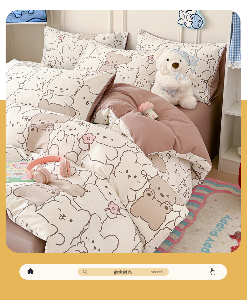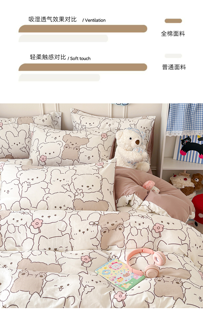 当前位置: 91家纺网 > 商品网购 > 床品套件 > 四件套 > 全棉普通四件套 > 女子家纺 2026新款全棉纯棉12868卡通印花四件套 小熊涂鸦