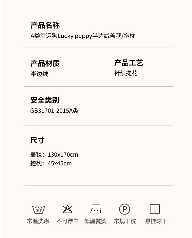 商品名称:栩裕纺织 2026新款艺术家居超柔半边绒A类针织毯披肩毯多功能盖毯礼物礼品终端控价 幸运狗Lucky puppy针织毯