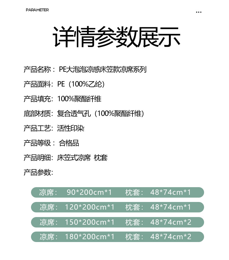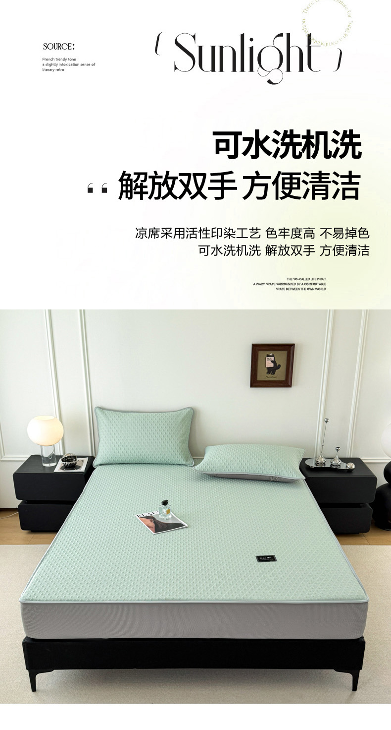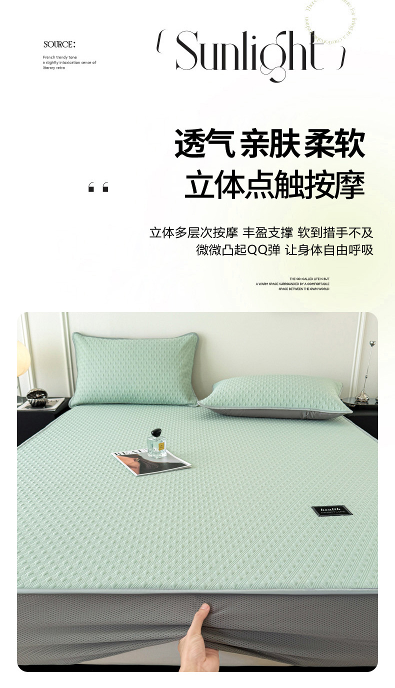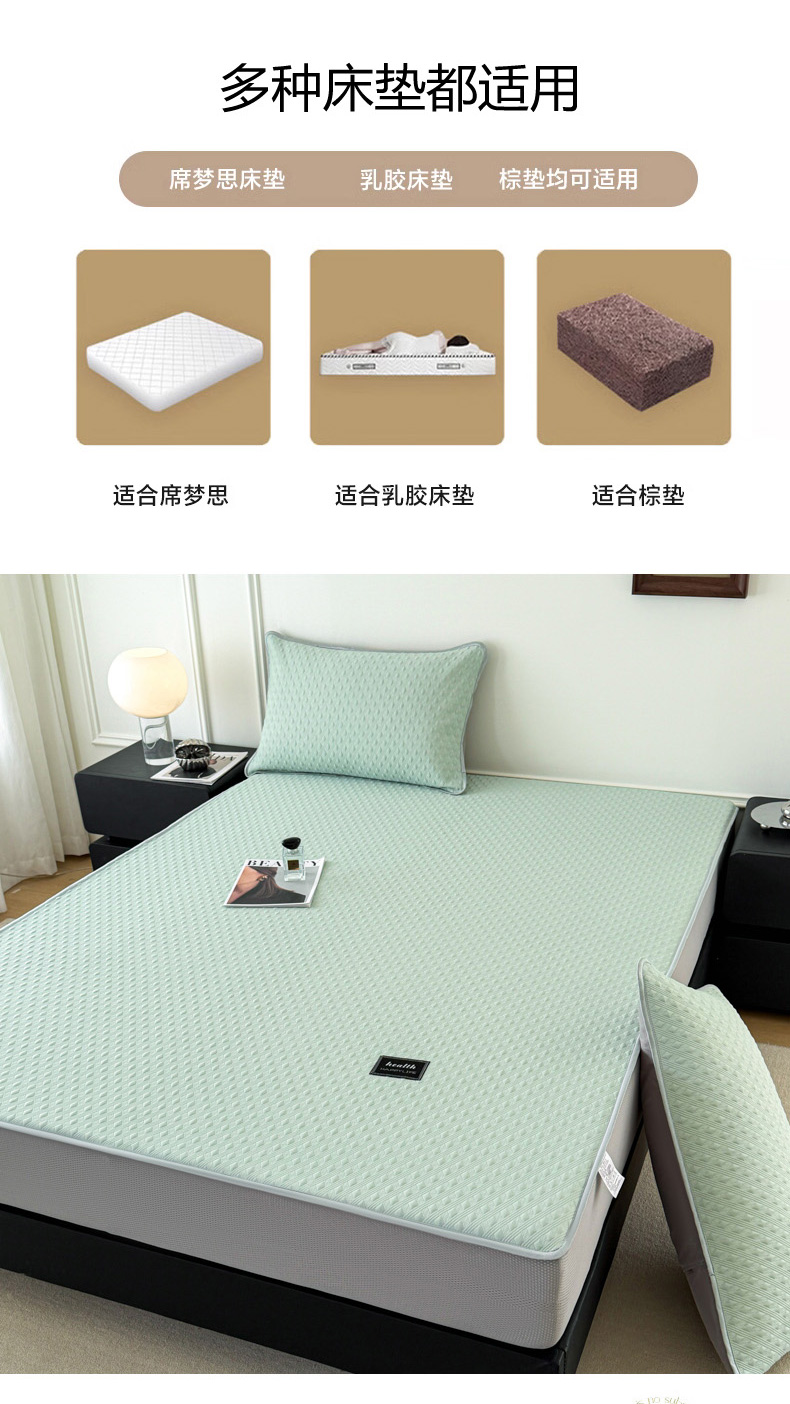 商品名称:倾慕家纺 2026春夏新款全PE冰豆豆全包围床笠款凉席席子 菱形泡绿