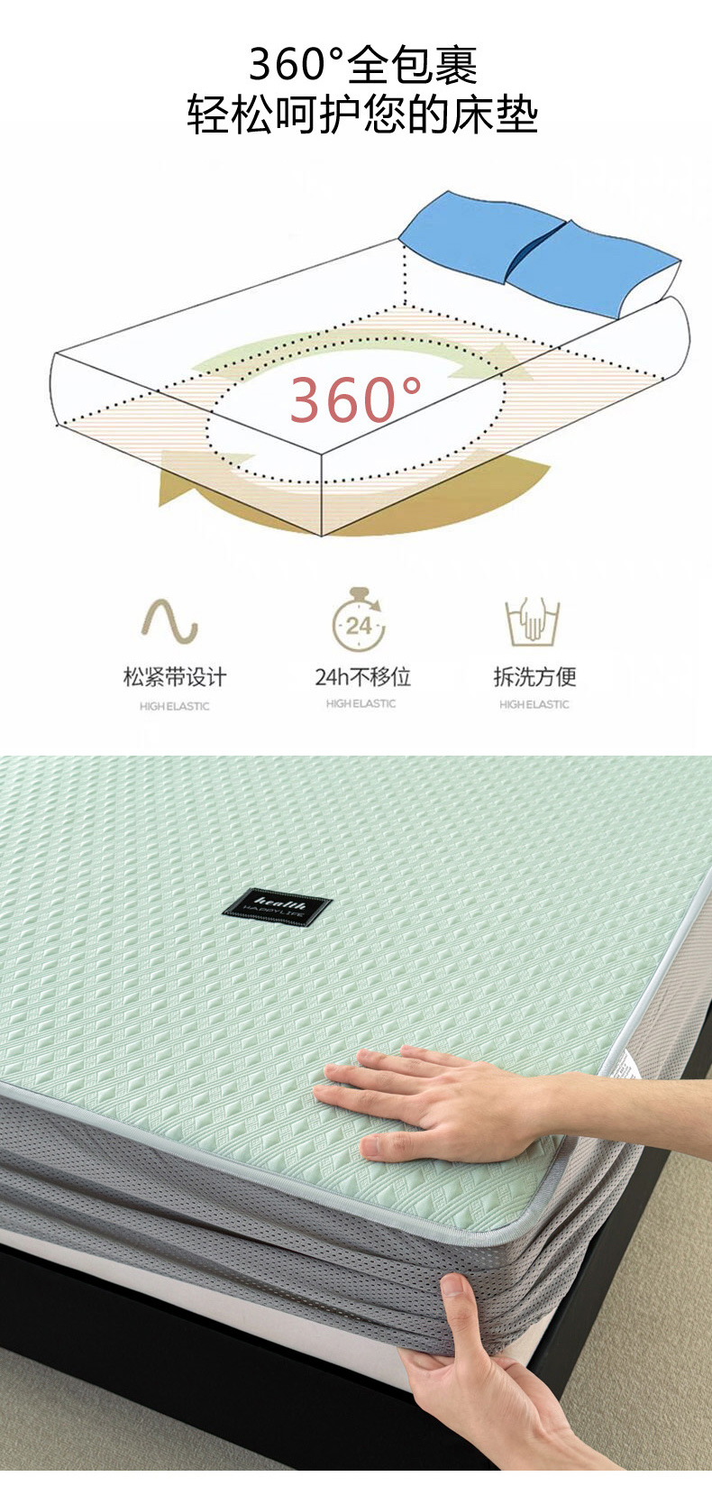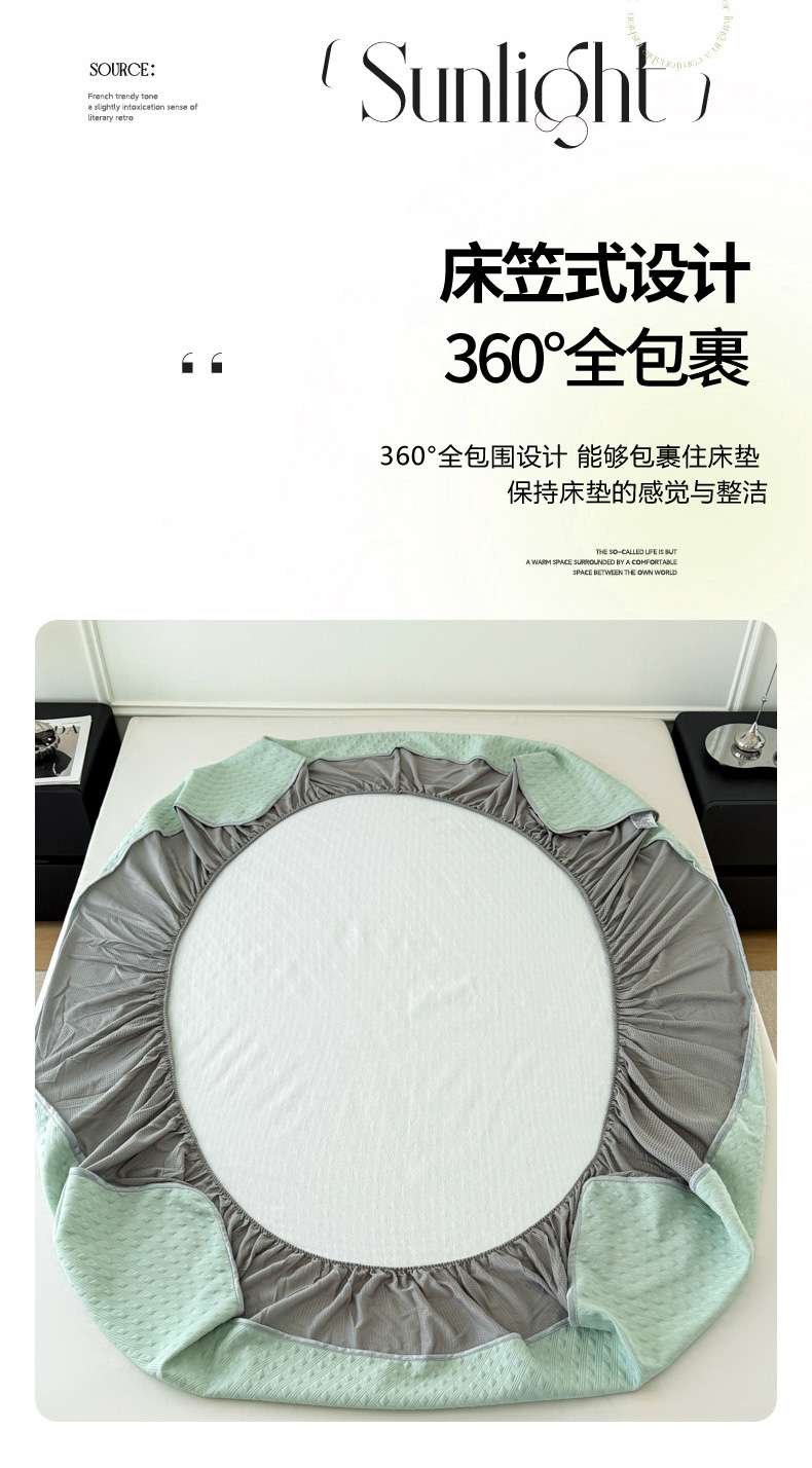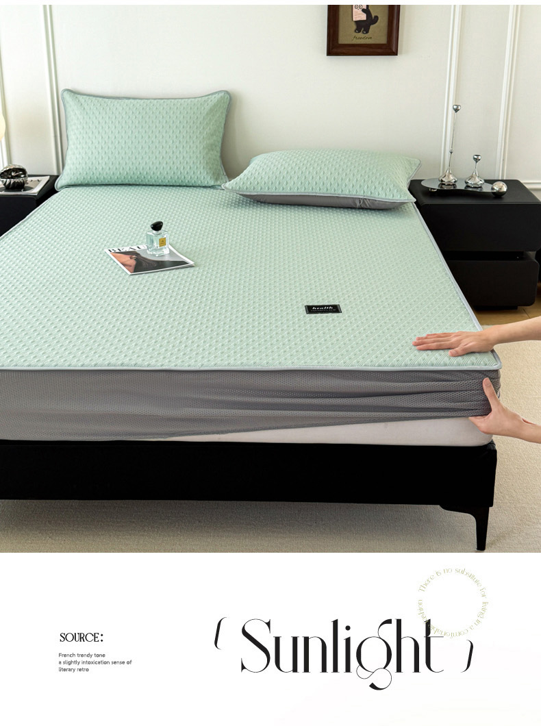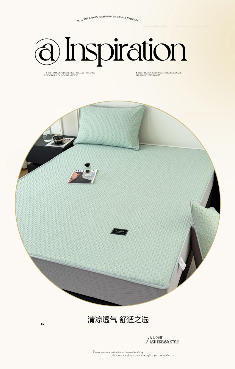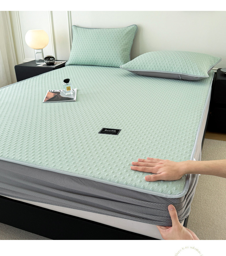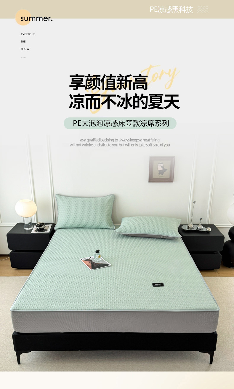 倾慕家纺 2026春夏新款全PE冰豆豆全包围床笠款凉席席子 菱形泡绿