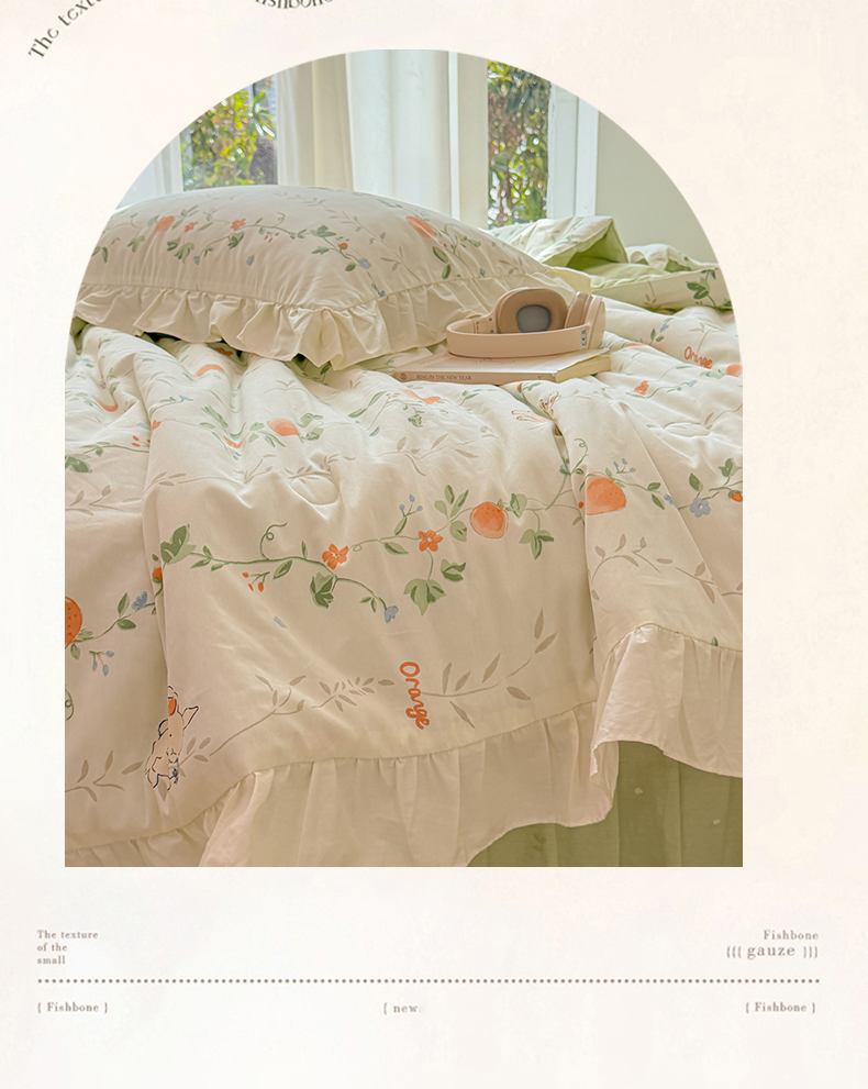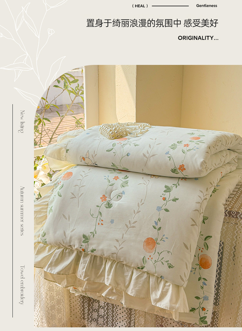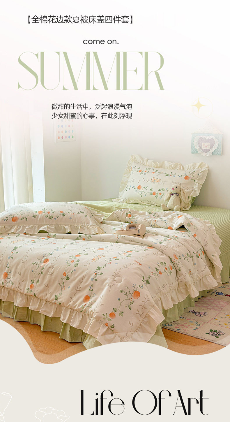• 91家纺网 家纺一手货源 找家纺 女子家纺 2026新款全棉花边夏被全棉床盖夏被四件套 牵藤兔