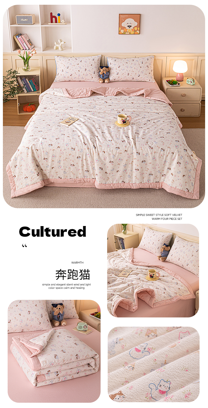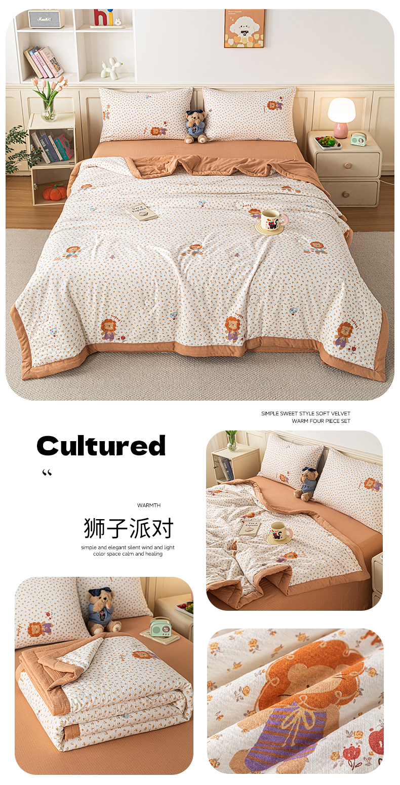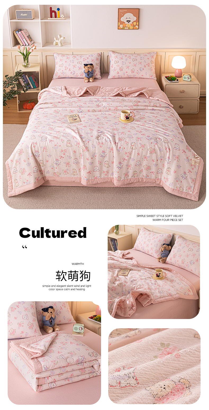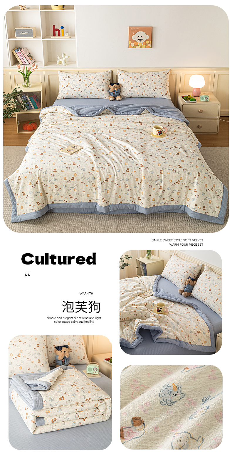 商品名称:(总)安琪家纺 2026新款A类云感双层纱皱皱纱棉花被小清新印花夏被夏凉被费尔岛【日产万单】