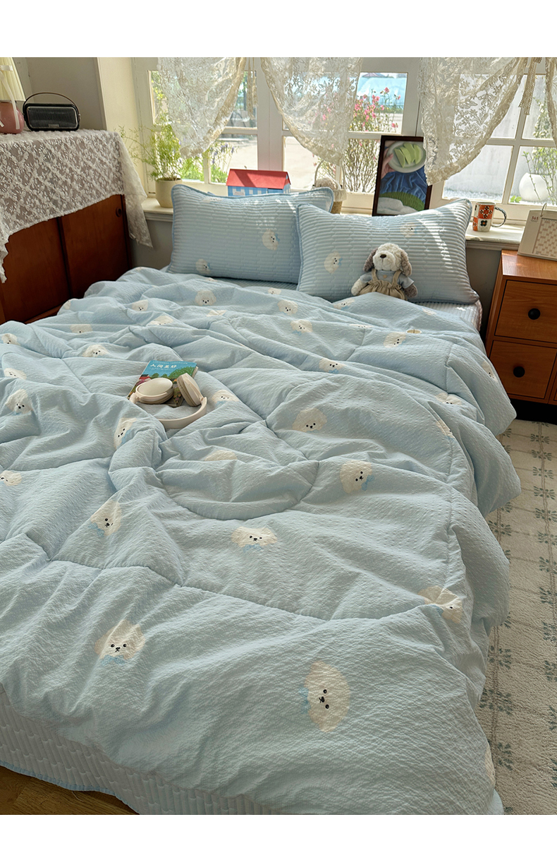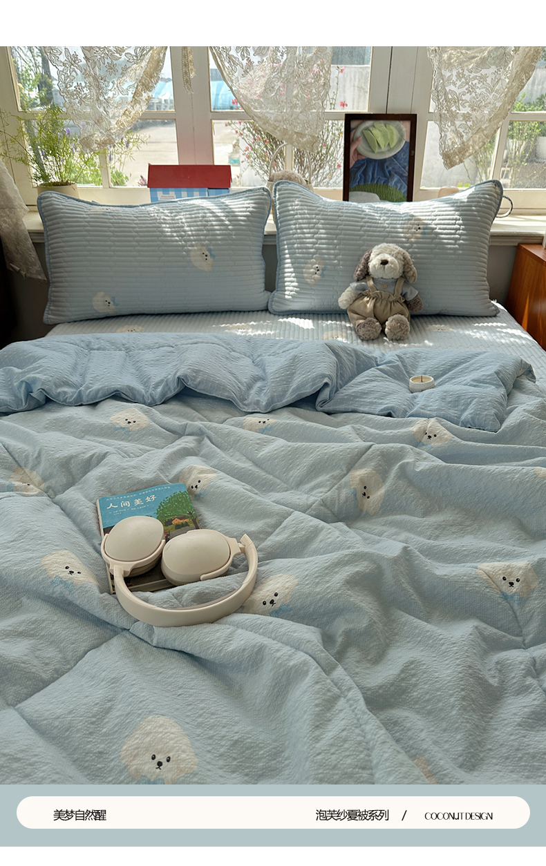 (总)几禾 2026新款A类云感双层纱夏被木棉皱皱纱棉花被小清新印花夏被夏凉被费尔岛空调被,奔跑猫,蛋糕派,可可小狗,蓝枝,猫趣,抹茶小猫,嫩芽,泡芙狗,软萌狗,狮子派对,兔子乐队,顽皮熊粉,顽皮熊蓝,挽歌,摘星