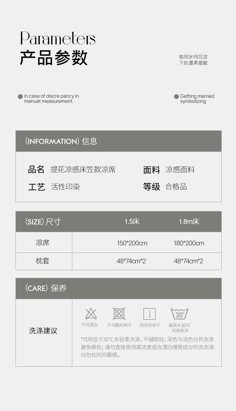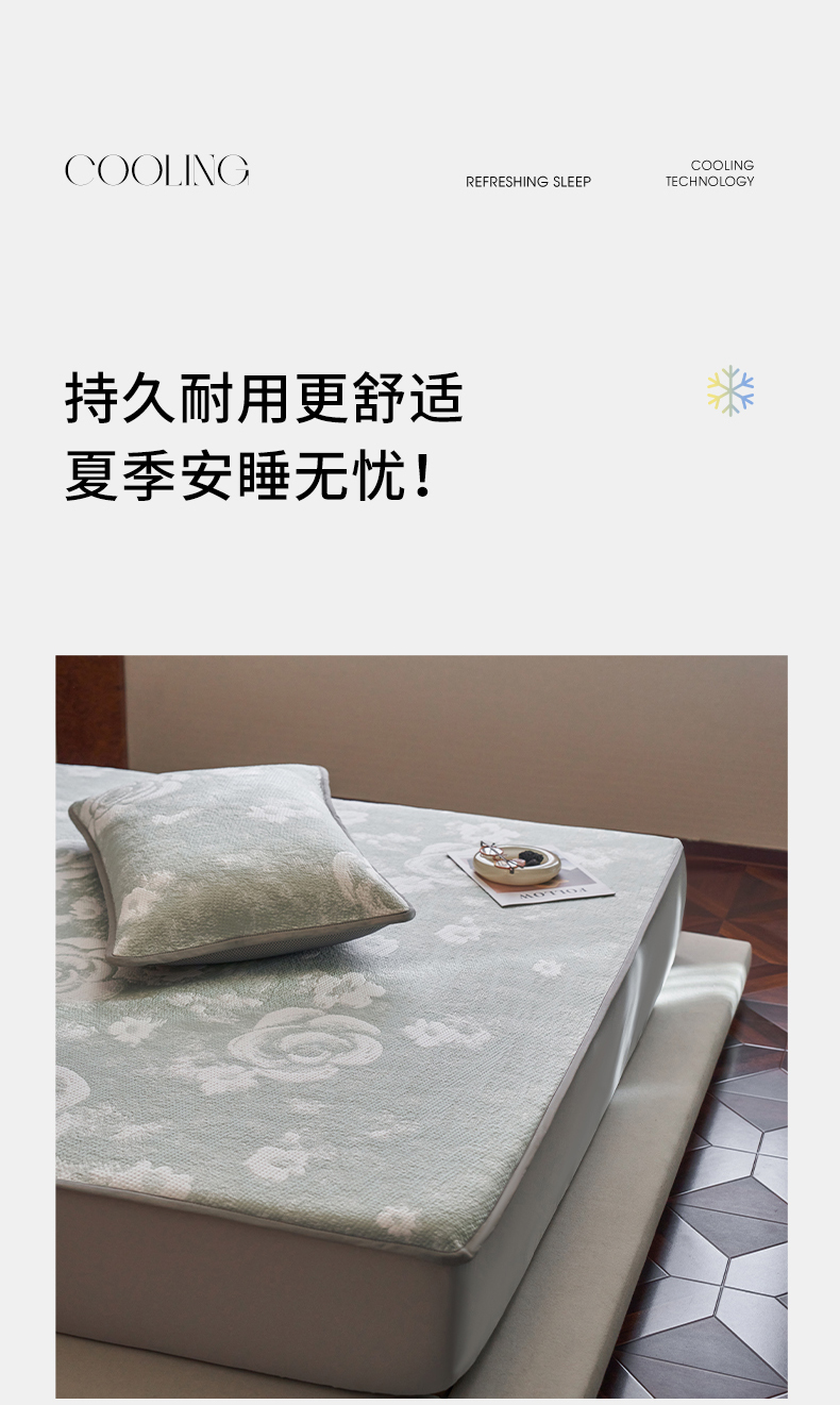 商品名称:千朵森 2026新款花卉系列冰感提花款凉席三件套 雾蓝屿
