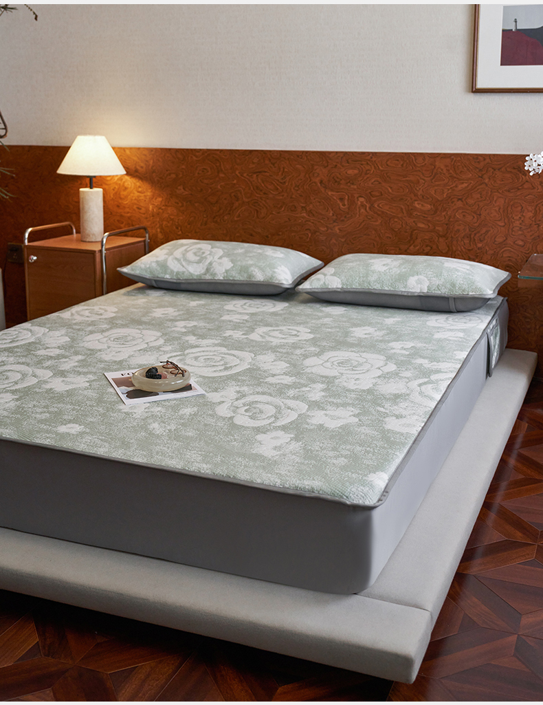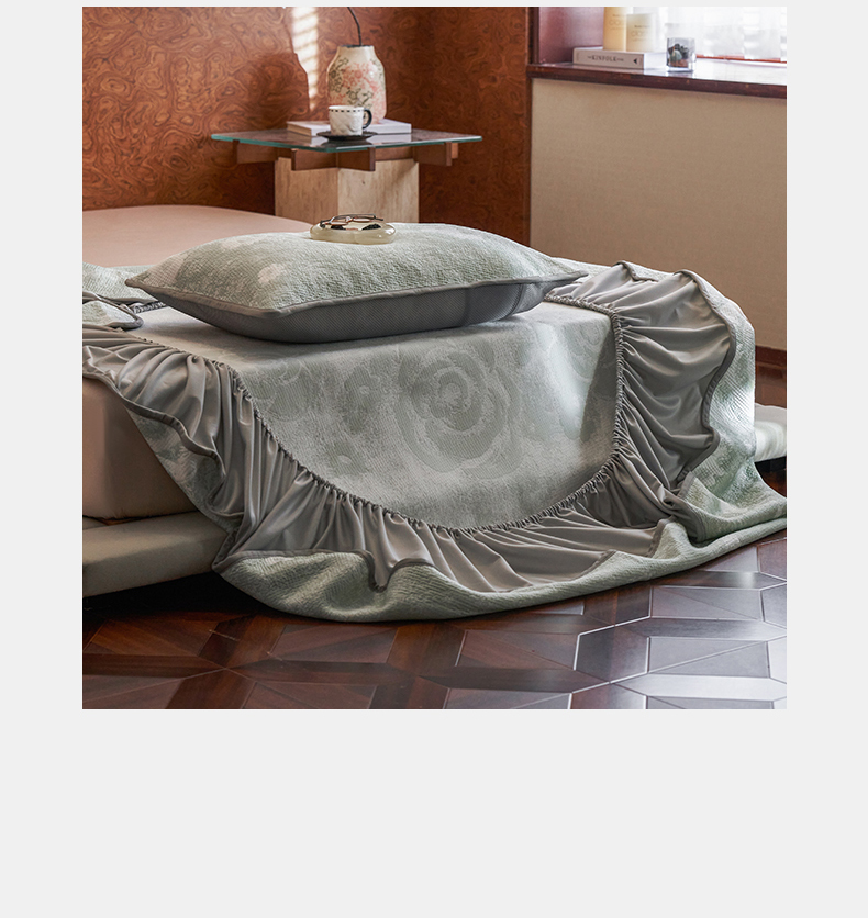 千朵森 2026新款花卉系列冰感提花款凉席三件套 雾蓝屿