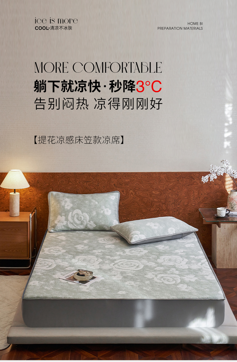 (总)千朵森 2026新款A类抗菌冰岛冰感丝床笠款凉席三件套 风格二,冰岛-暮夜蓝,冰岛-浅茶杏,冰岛-晴空蓝,冰岛-山茶灰,冰岛-山梗灰