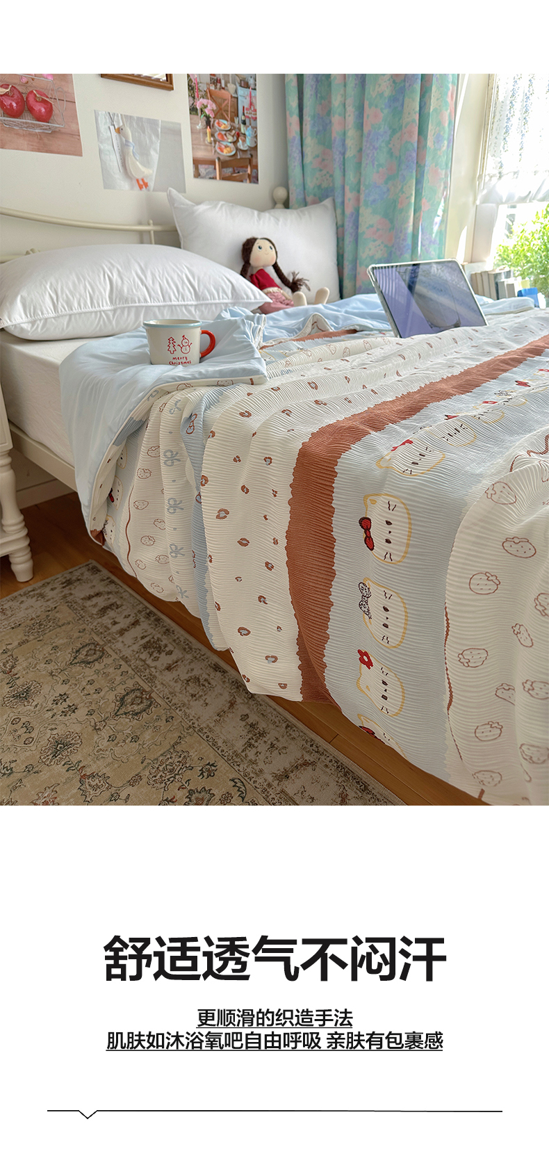 商品名称:顾里家纺 2026新款韩系费尔岛风泡泡凉感夏被夏凉被空调被 天使木马