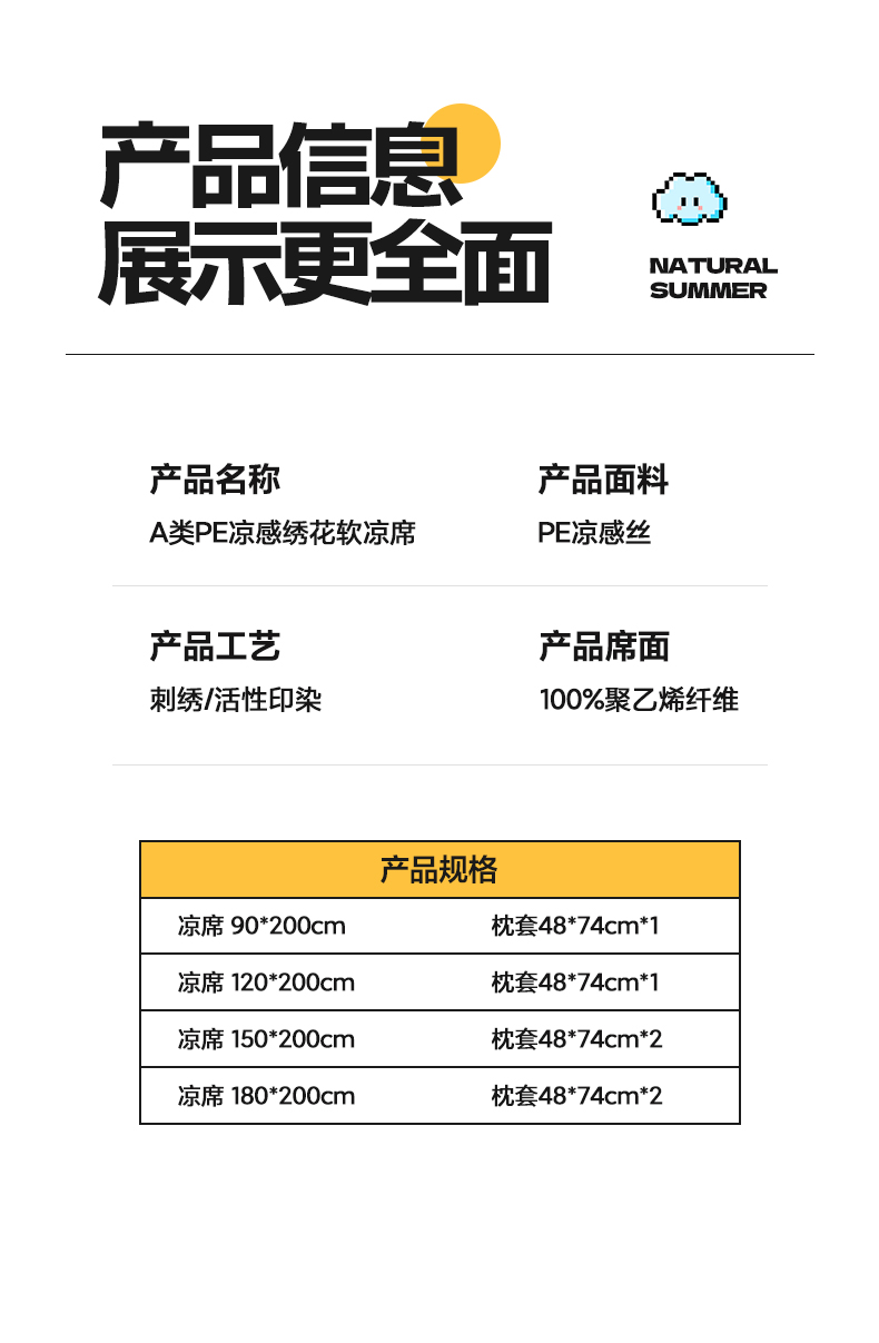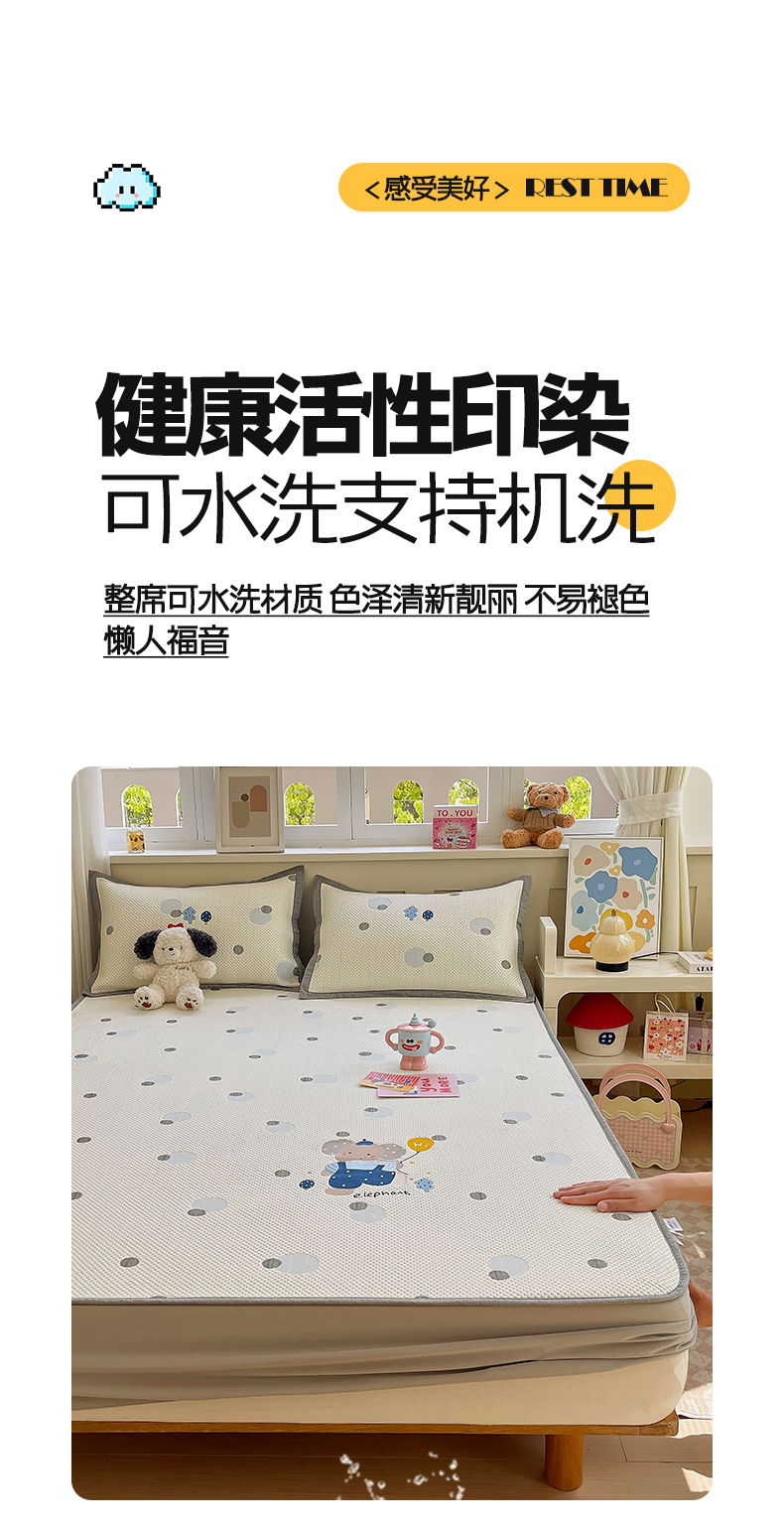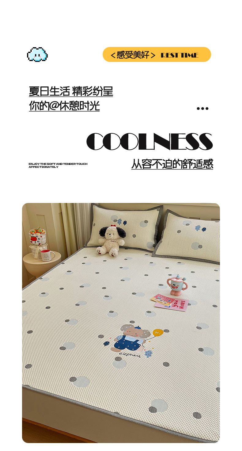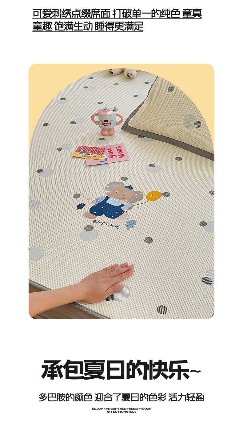 商品名称:帅露家纺 2026新款A类PE中分子卡通大版绣花软凉席席子 床笠款-波点日记