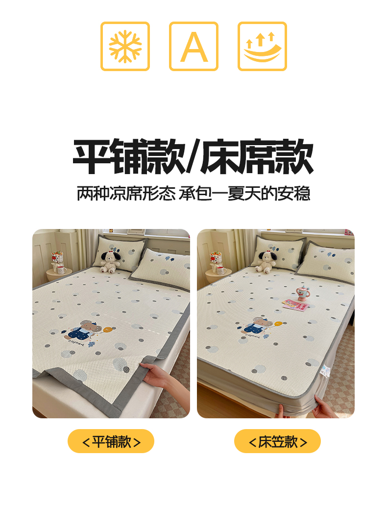 (总)帅露家纺 2026新款A类PE中分子卡通大版绣花软凉席席子,床笠款-波点日记,床笠款-粉屿森林,床笠款-蓝调企鹅,床笠款-懒懒兔,床笠款-星月织梦,平铺款-波点日记,平铺款-粉屿森林,平铺款-蓝调企鹅,平铺款-懒懒兔,平铺款-星月织梦