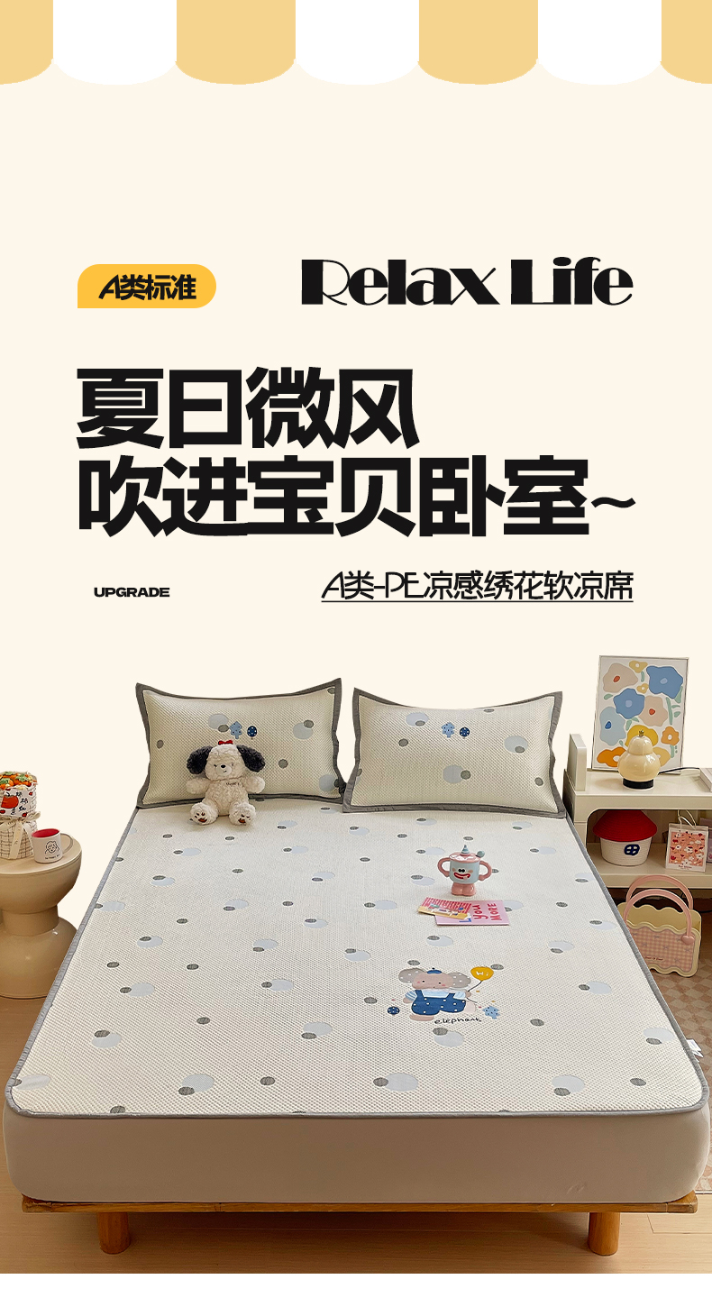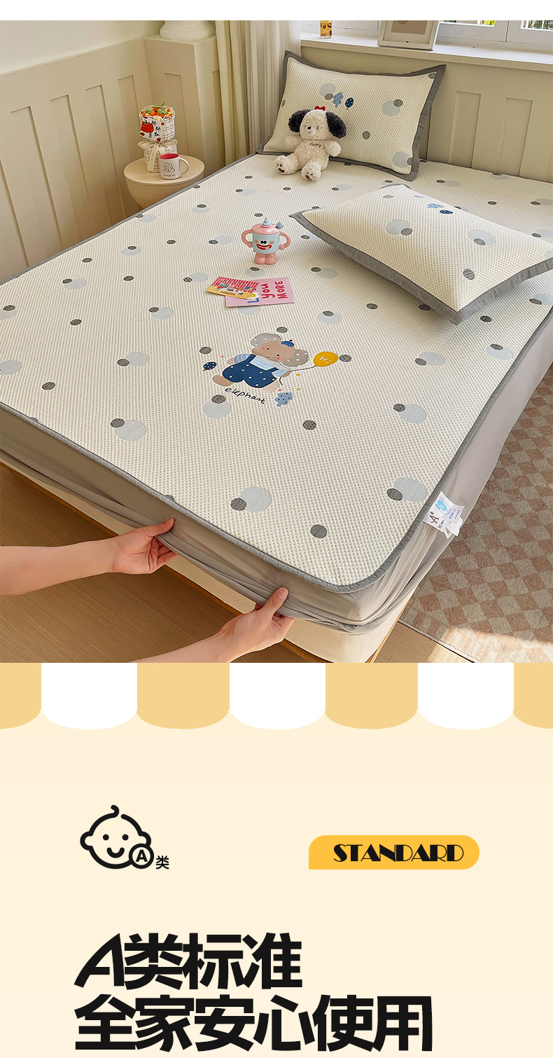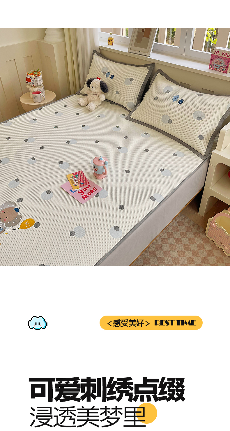 帅露家纺 2026新款A类PE中分子卡通大版绣花软凉席席子 床笠款-波点日记