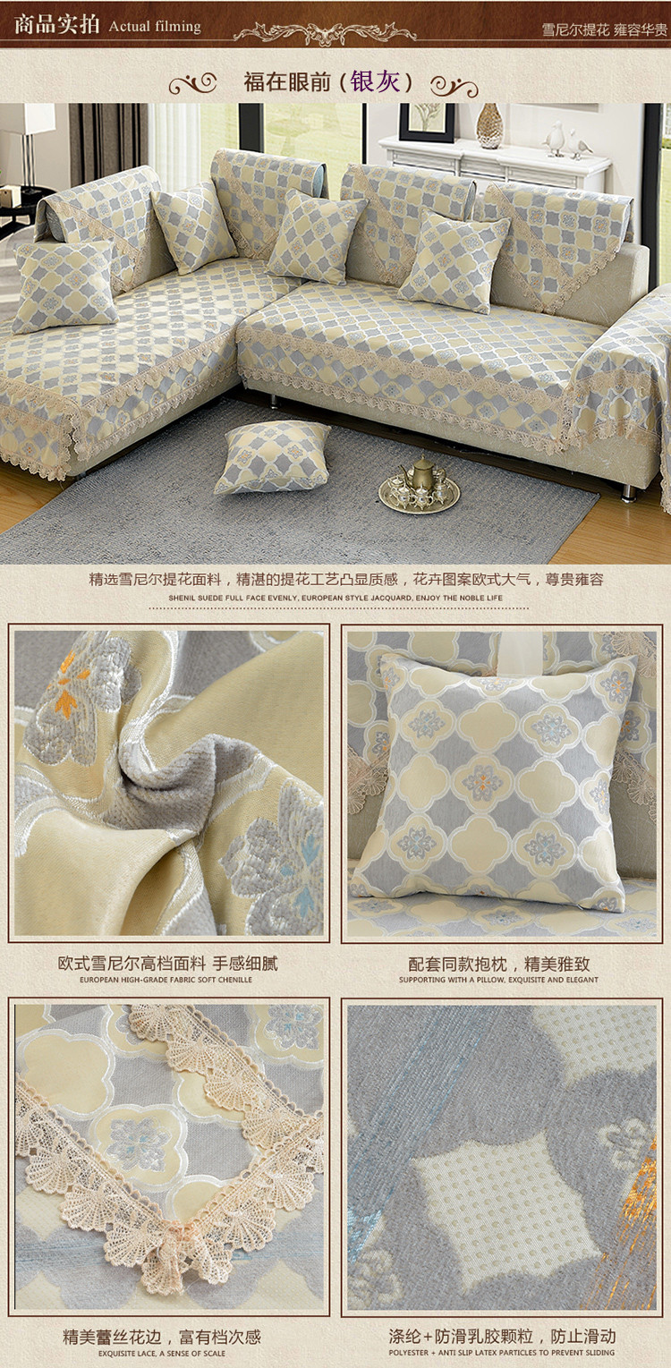 当前位置: 91家纺网 > 商品网购 > 居家布艺 > 坐垫/椅垫/沙发垫 > 沙发垫 > 启博家纺 2022防滑提花全盖雪尼尔沙发巾沙发垫沙发套沙发罩福在眼前-银灰