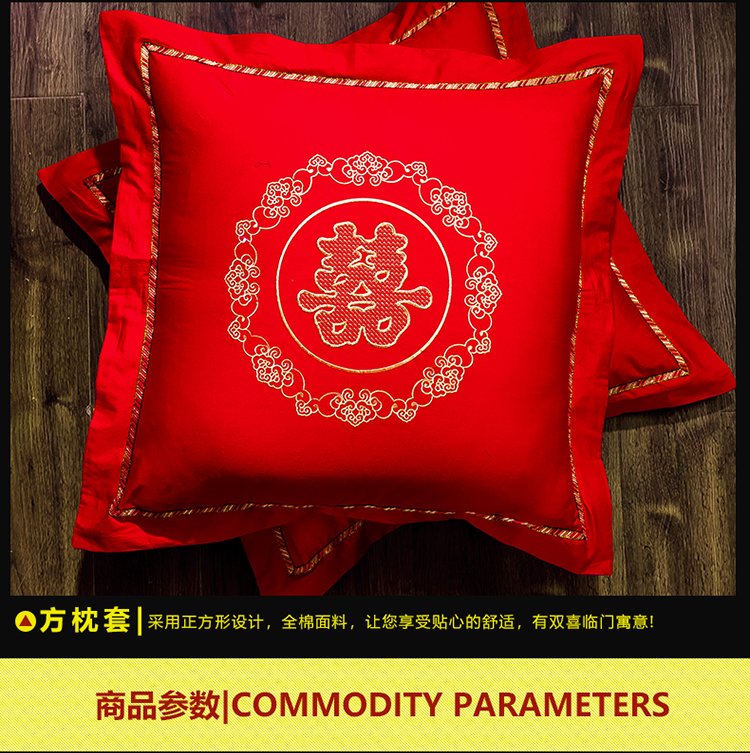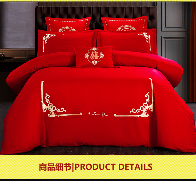 商品名称:慕她家纺 简约婚庆四件套大红色刺绣全棉纯棉六多件套爱的见证