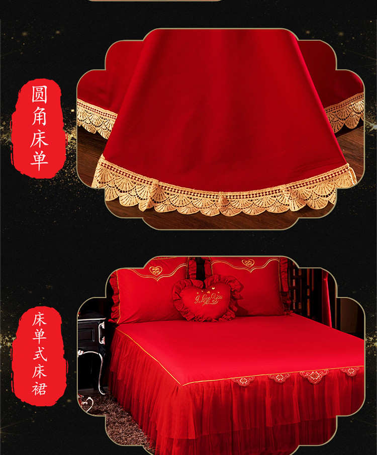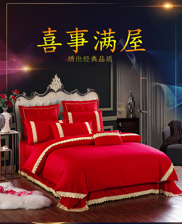 商品名称:慕她家纺 简约婚庆四件套大红色刺绣全棉纯棉六多件套喜事满屋
