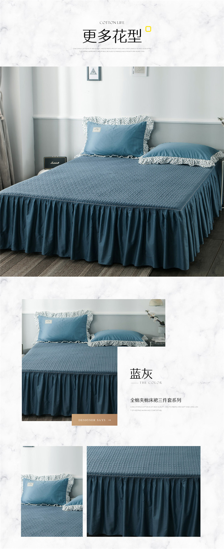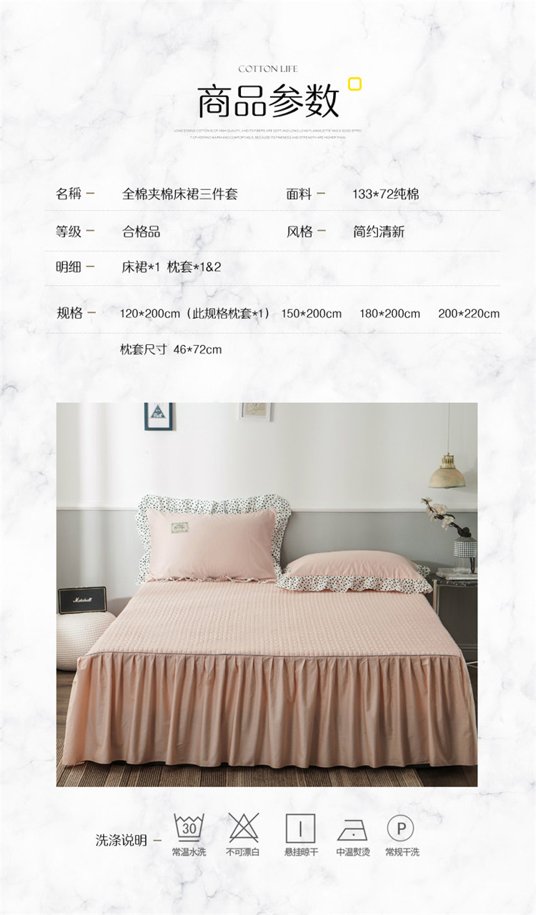 (总)万盛家纺 全棉滚绳款单品夹棉床裙