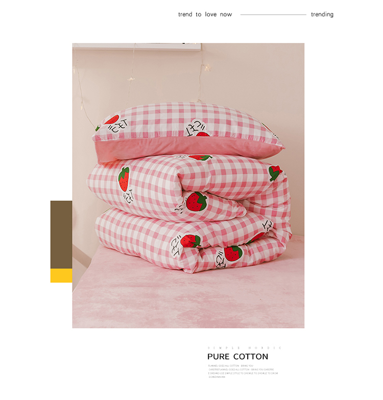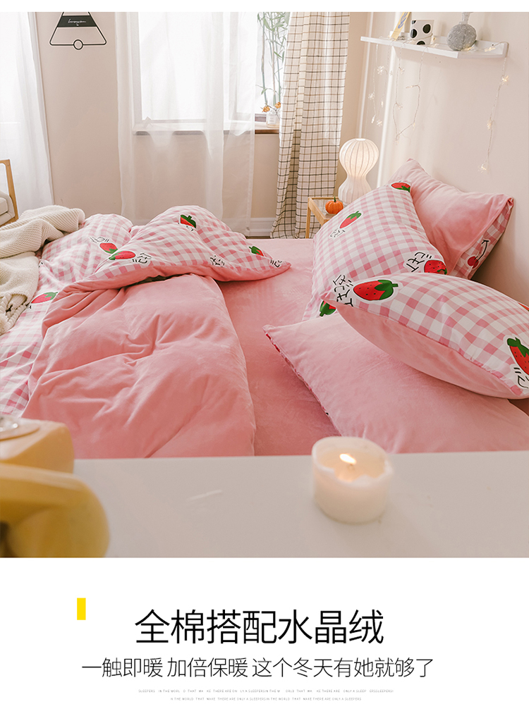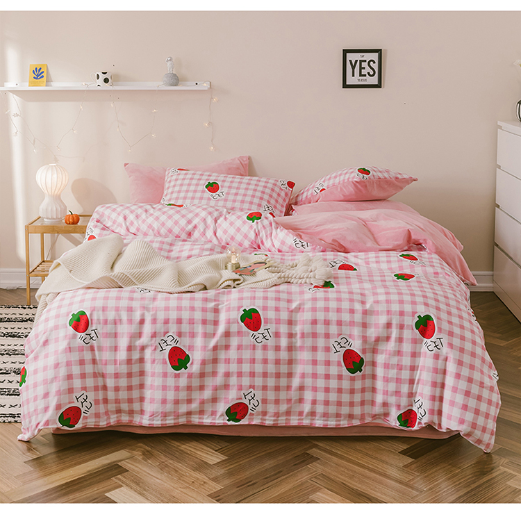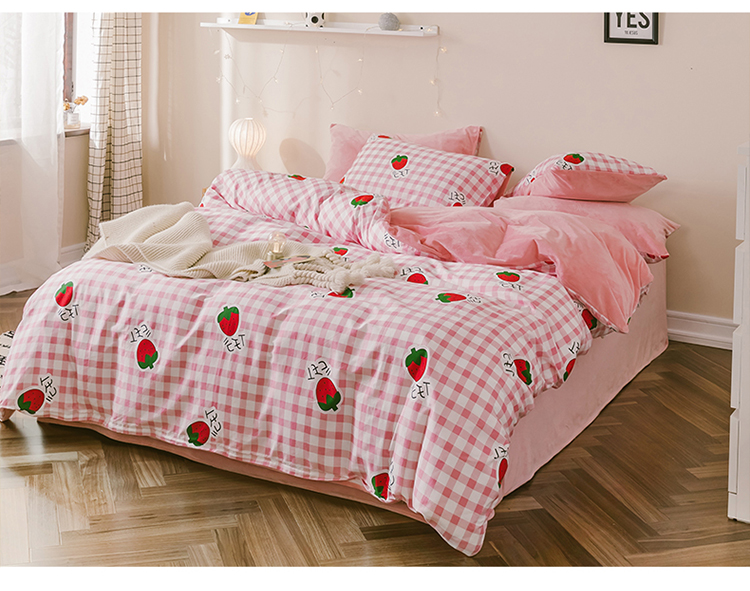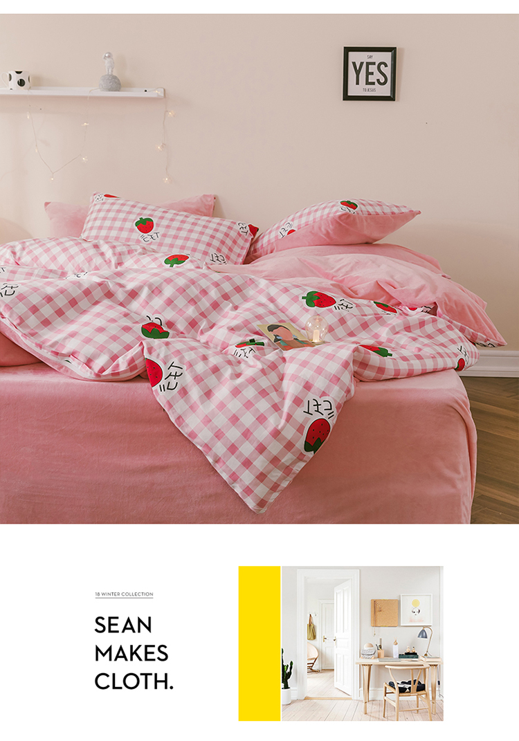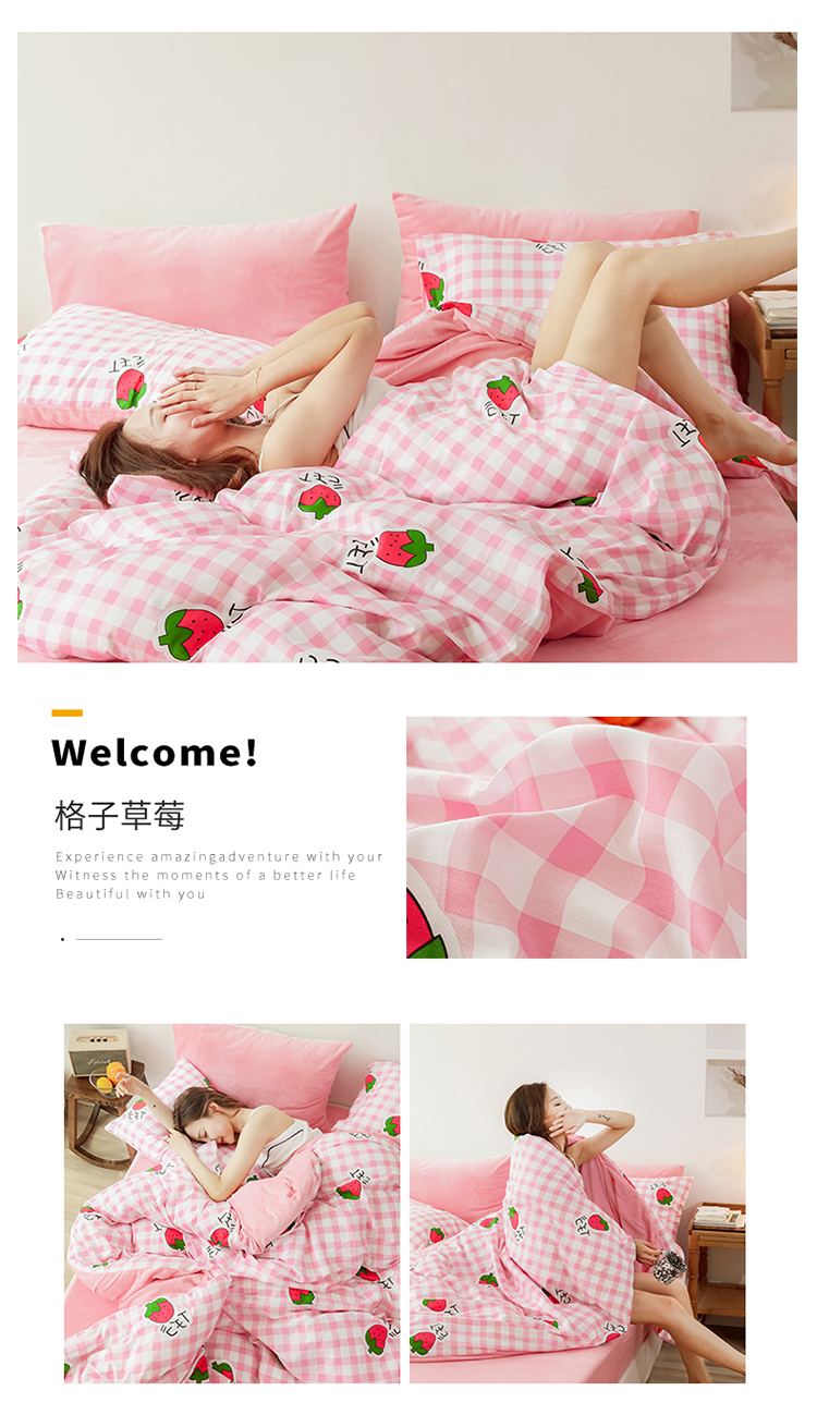 昔可 2019新款13372棉加绒水果系列四件套 格子草莓