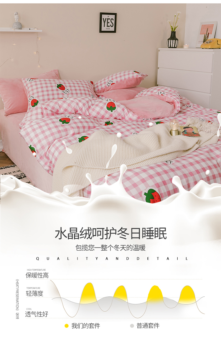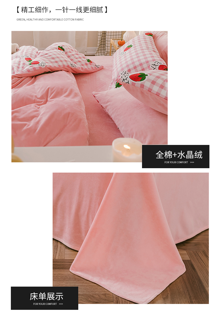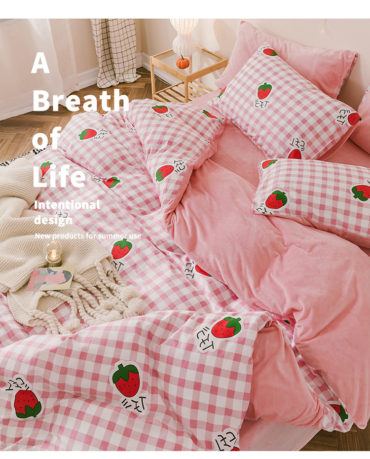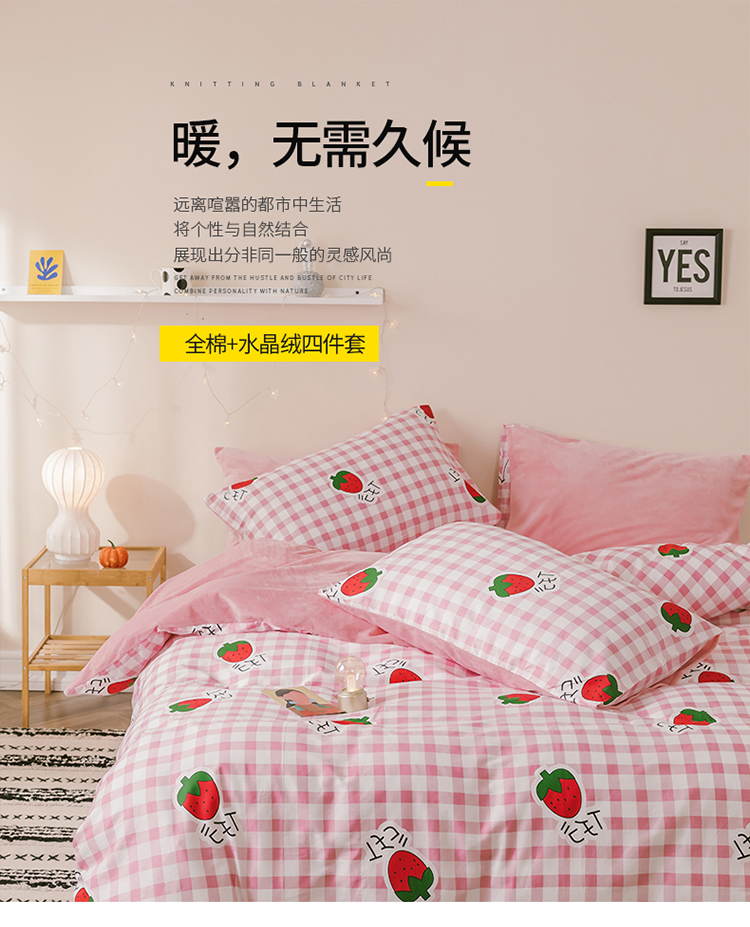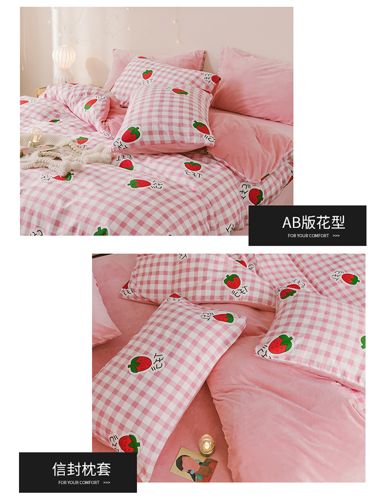昔可 2019新款13372棉加绒水果系列四件套 格子草莓