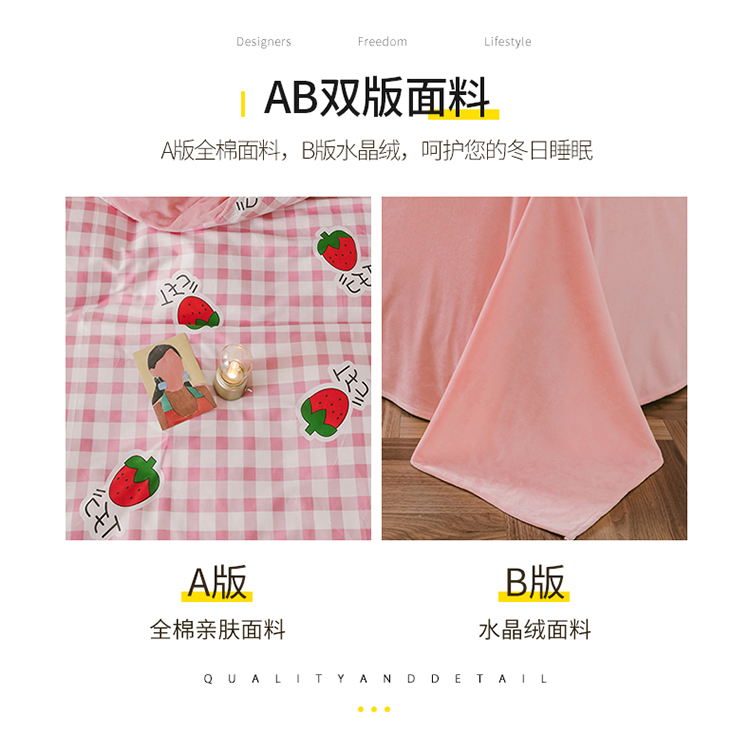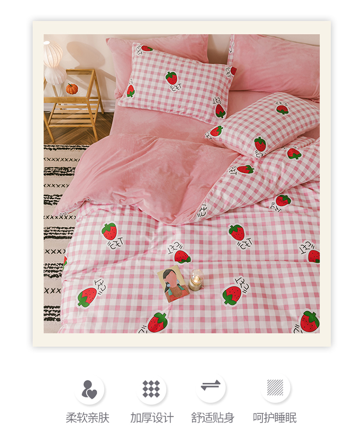 商品名称:昔可 2019新款13372棉加绒水果系列四件套 格子草莓