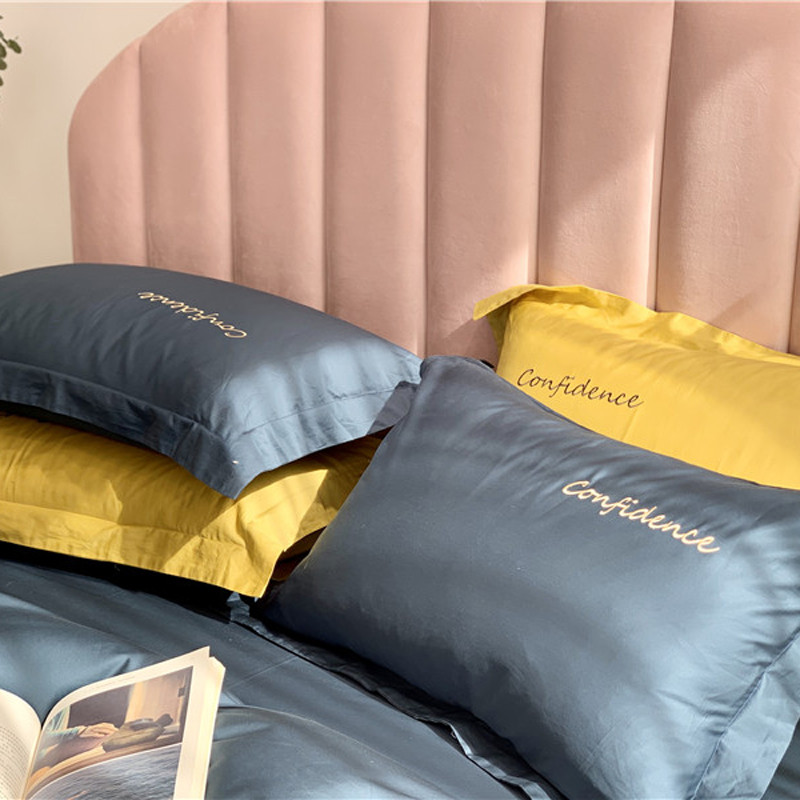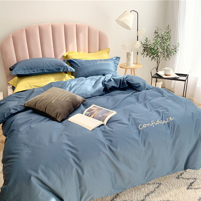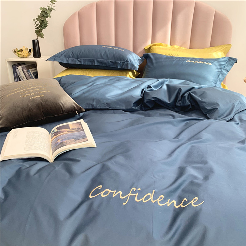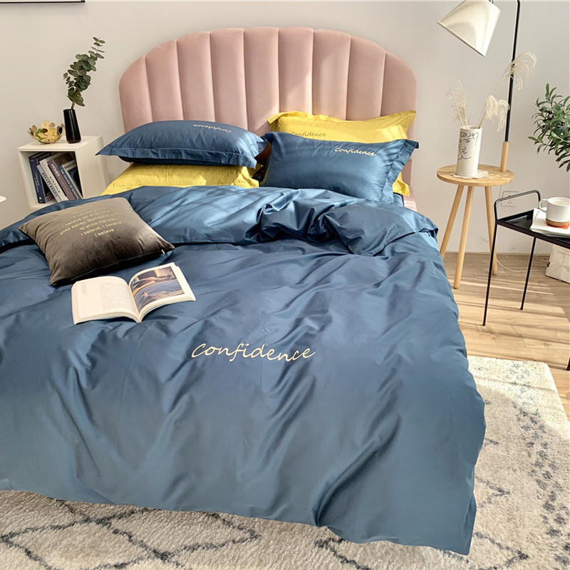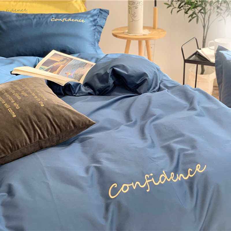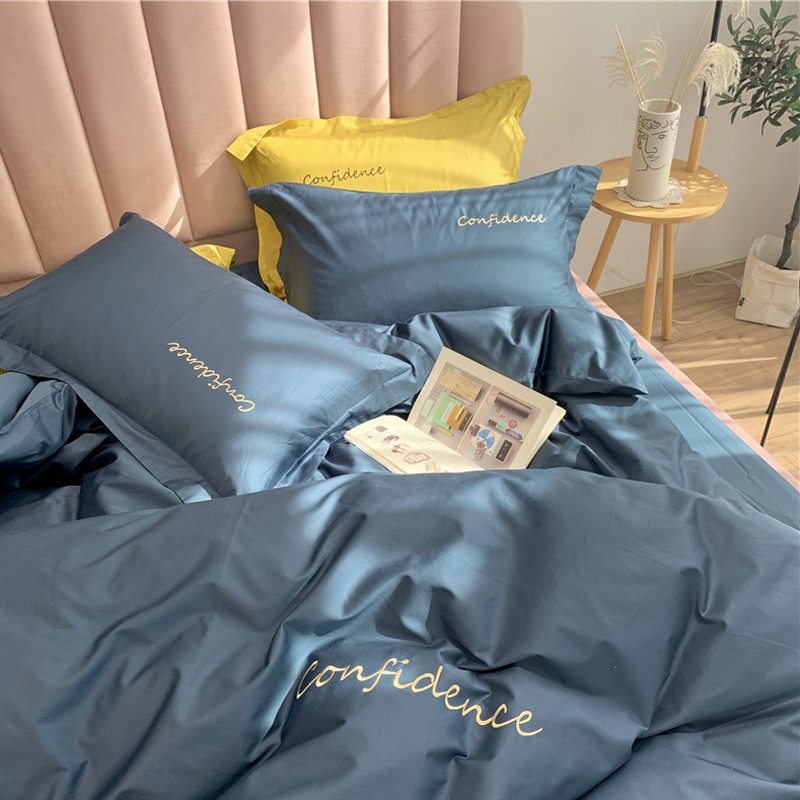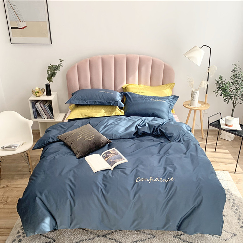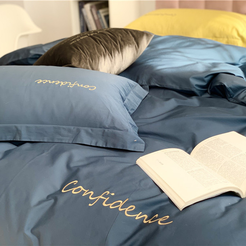 柚子家纺 2020新款100支贡缎澳棉绣花四件套拾色-深蓝