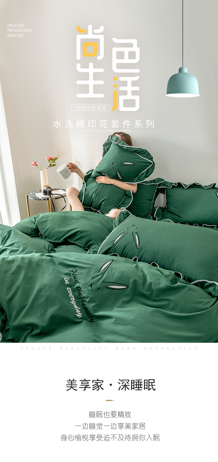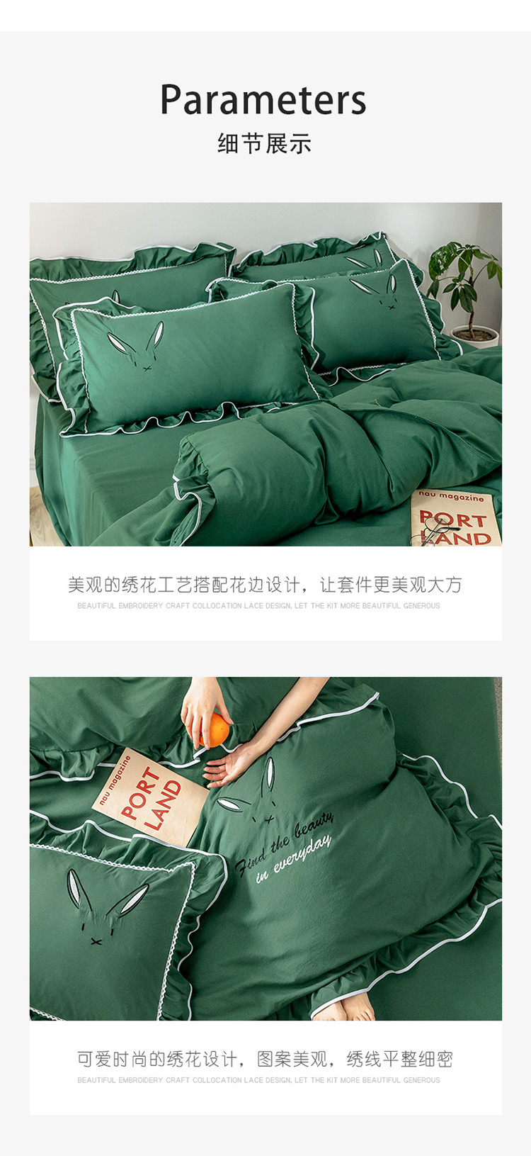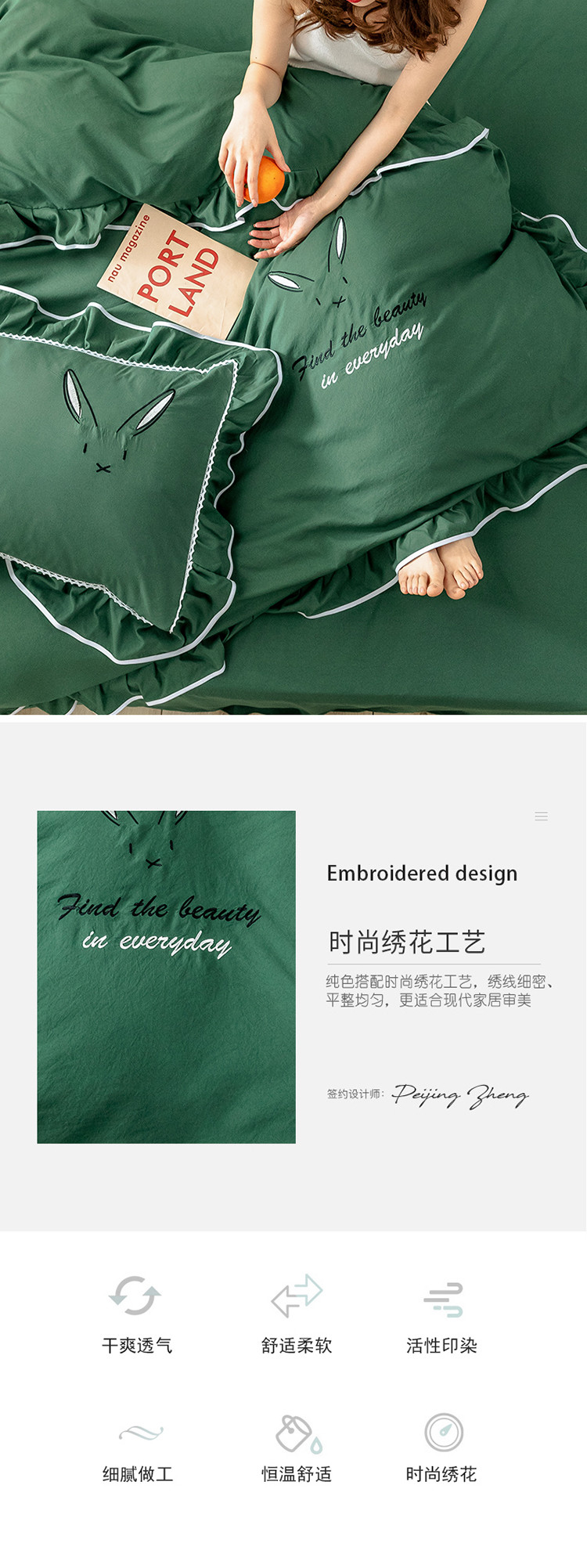 商品名称:ab家纺 2020新款兔耳朵绣花水洗棉四件套 葱绿
