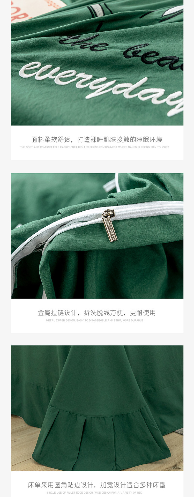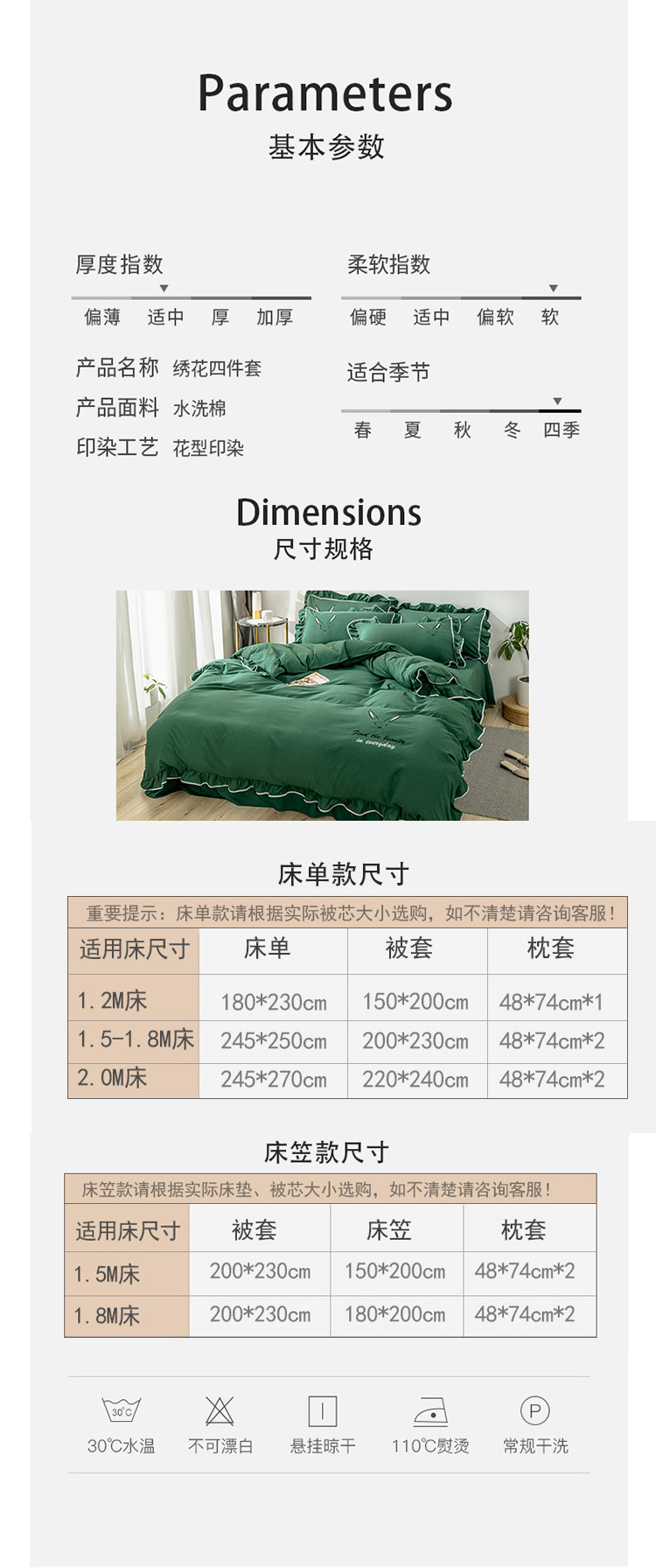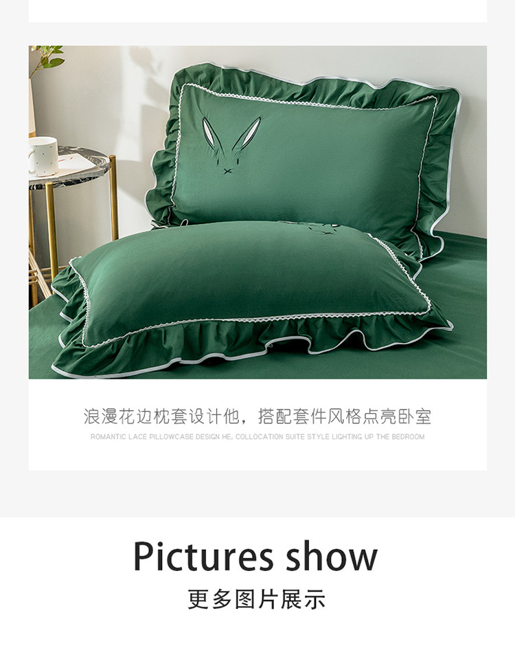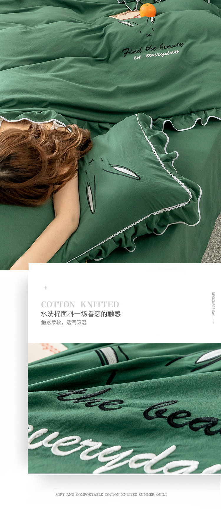 商品名称:ab家纺 2020新款兔耳朵绣花水洗棉四件套 葱绿