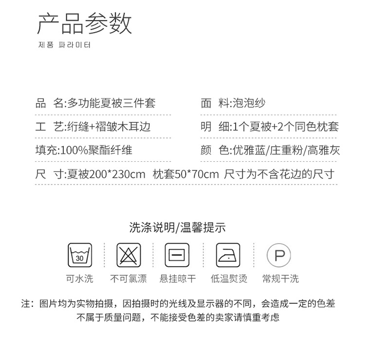 商品名称:(总)北纬27度 2020新款韩式公主风多功能床盖夏被三件套