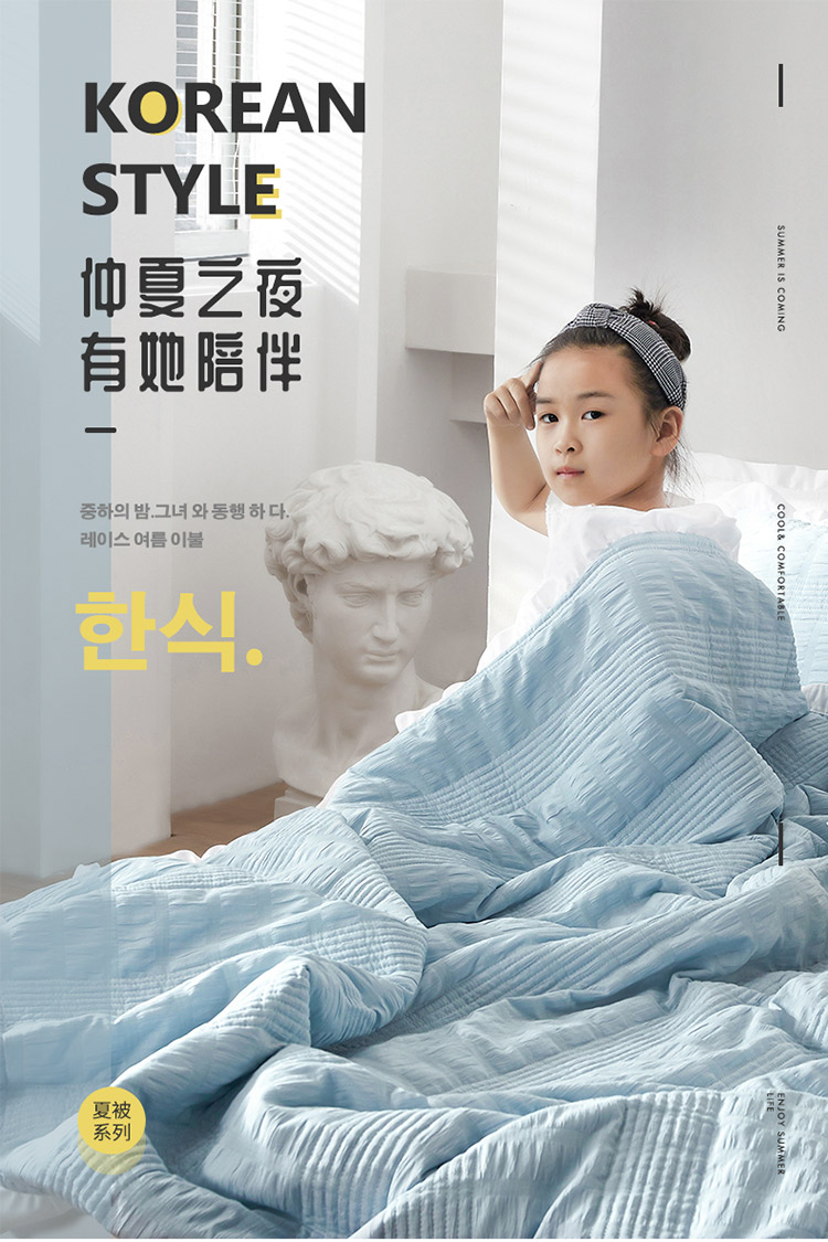 (总)北纬27度2025新款双层全棉绉绉纱夏被四件套,米色,浅卡其,豆沙,牛仔蓝