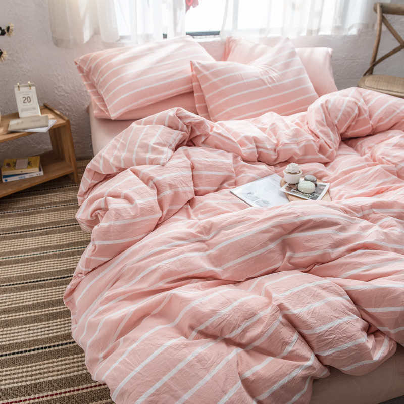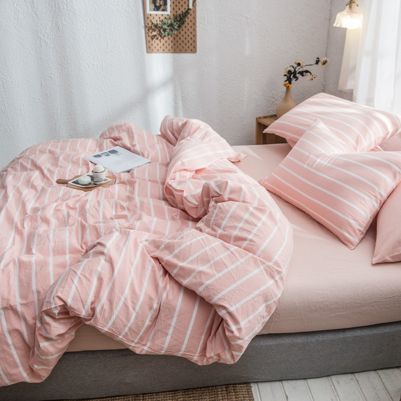 佳梦达 2020新款全色织全棉水洗双拼单床笠 浅粉白条